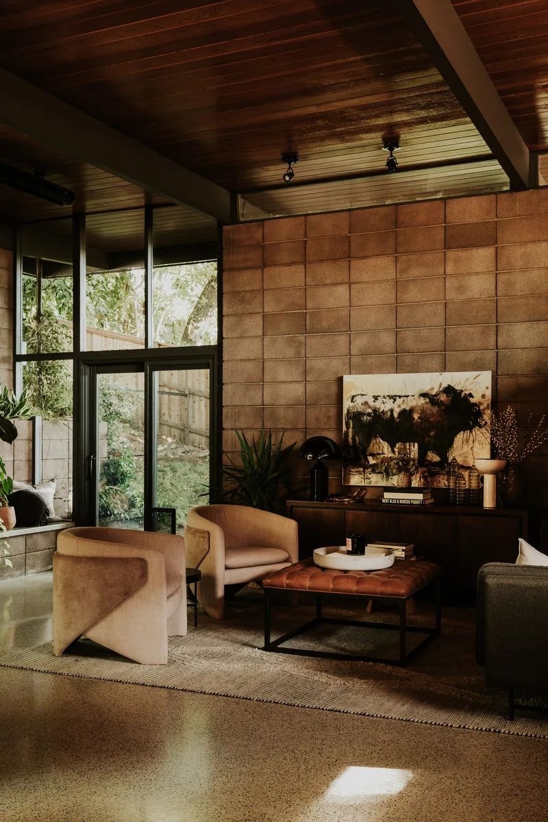 La distribución de la casa, que fluye hacia el jardín, el patio y las áreas de la colina, crea un ambiente que invita a la contemplación y a la vida familiar. La integración del interior con el entorno natural es un testimonio de la habilidad de Carter para diseñar espacios que no solo son habitables, sino también inspiradores. Esta conexión con la naturaleza se ve reforzada por las amplias ventanas que inundan de luz natural los interiores, creando una atmósfera cálida y acogedora.