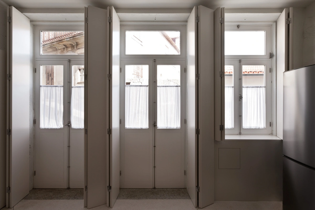 Como reminiscencia de la antigua panadería, la cocina abre sus tres puertas de par en par al barrio de Foz Velha. Se puede preparar así la cena en un ambiente relajado al aire libre disfrutando de la compañía de los vecinos.