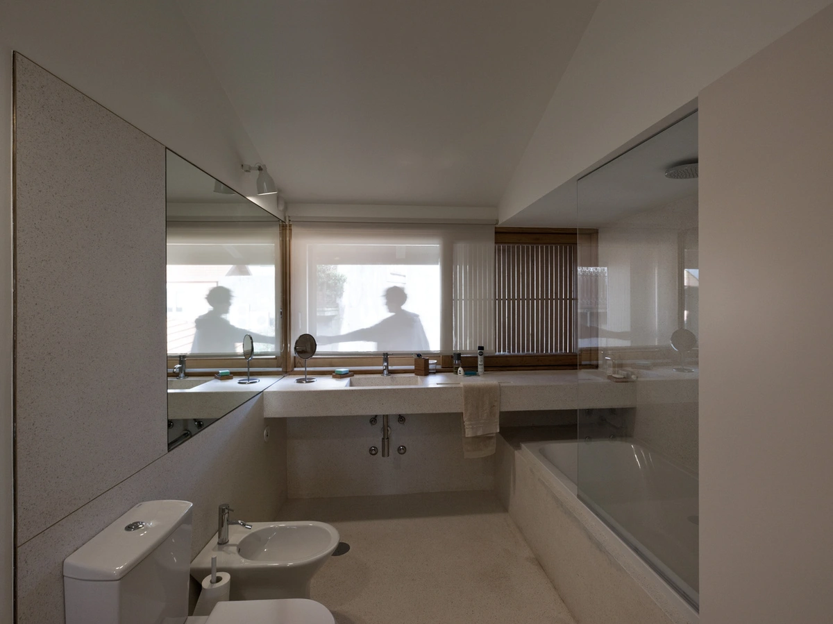 El piso superior cuenta con dos habitaciones a distinto nivel que comparten baño con dos puertas de entrada independientes. Destaca también una amplia terraza para tomar el sol abierta hacia los patios traseros del vecindario. Y si el tiempo no acompaña, uno siempre puede refugiarse en la sala de estar. Aunque algo más introvertida, su gran claraboya proporciona luz en abundancia, haciendo que resalten las formas y la textura de las piedras centenarias: el entorno ideal para compartir historias de Oporto.