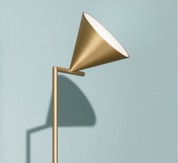 Una lámpara de pie exquisita diseñada por Michael Anastassiades; la combinación de mástil en acero dorado y base en mármol es sencillamente fantástica. Una lámpara con personalidad propia que llena de sofisticación y elegancia cualquier rincón del hogar.