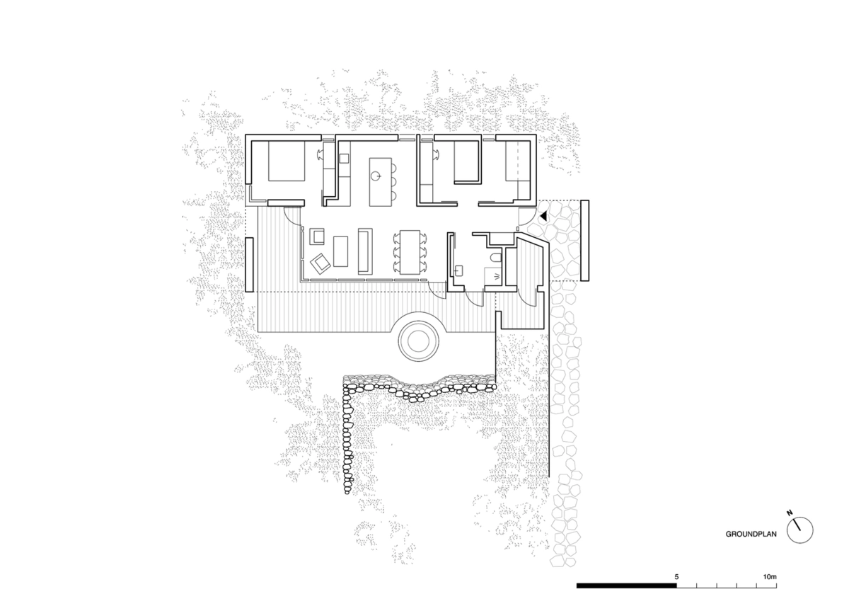 Con un enfoque mínimamente invasivo sobre la naturaleza circundante, el equipo diseñó unas viviendas con espacios de circulación interior limitados, pero con grandes terrazas y ventanales para aprovechar todo el paisaje, en especial sobre la vertiente sur.