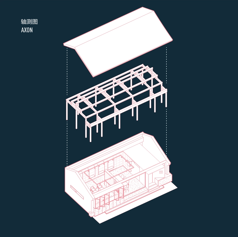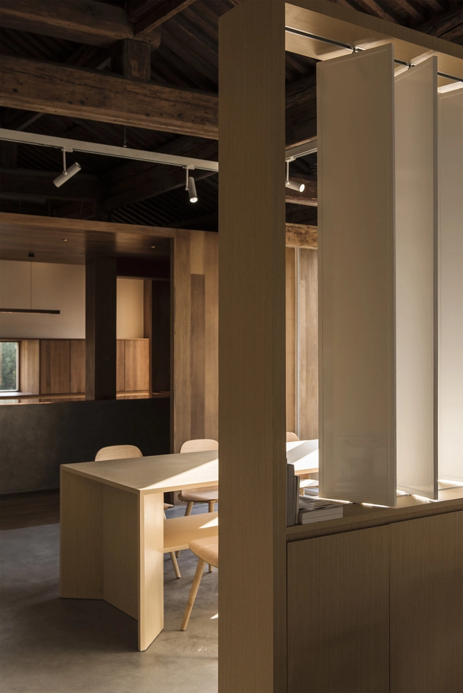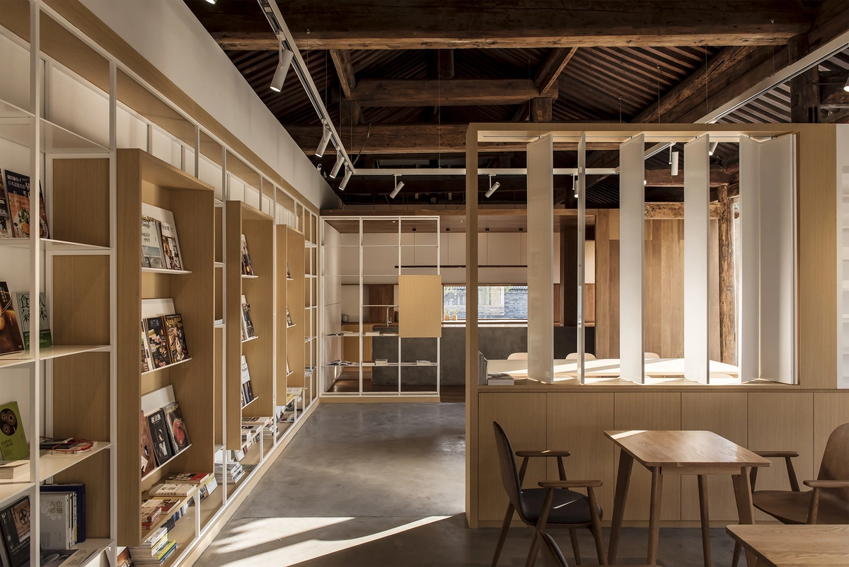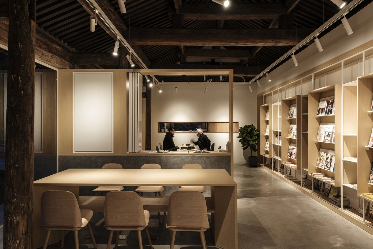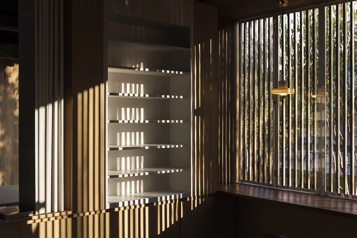 La nueva biblioteca se asienta en una casa tradicional de tres habitaciones. Para equilibrar lo antiguo con lo contemporáneo, había que analizar cada rincón del viejo edificio. Se comprobó que algunas estructuras originales de madera estaban dañadas o torcidas, por lo que se ideó un sistema de refuerzo a base de teca y acero para conservar parte del aspecto exterior de la vivienda.