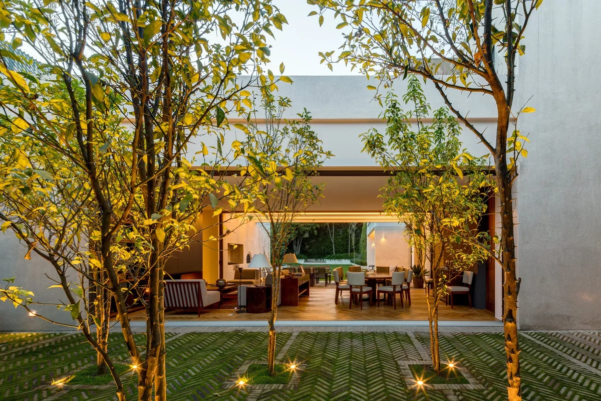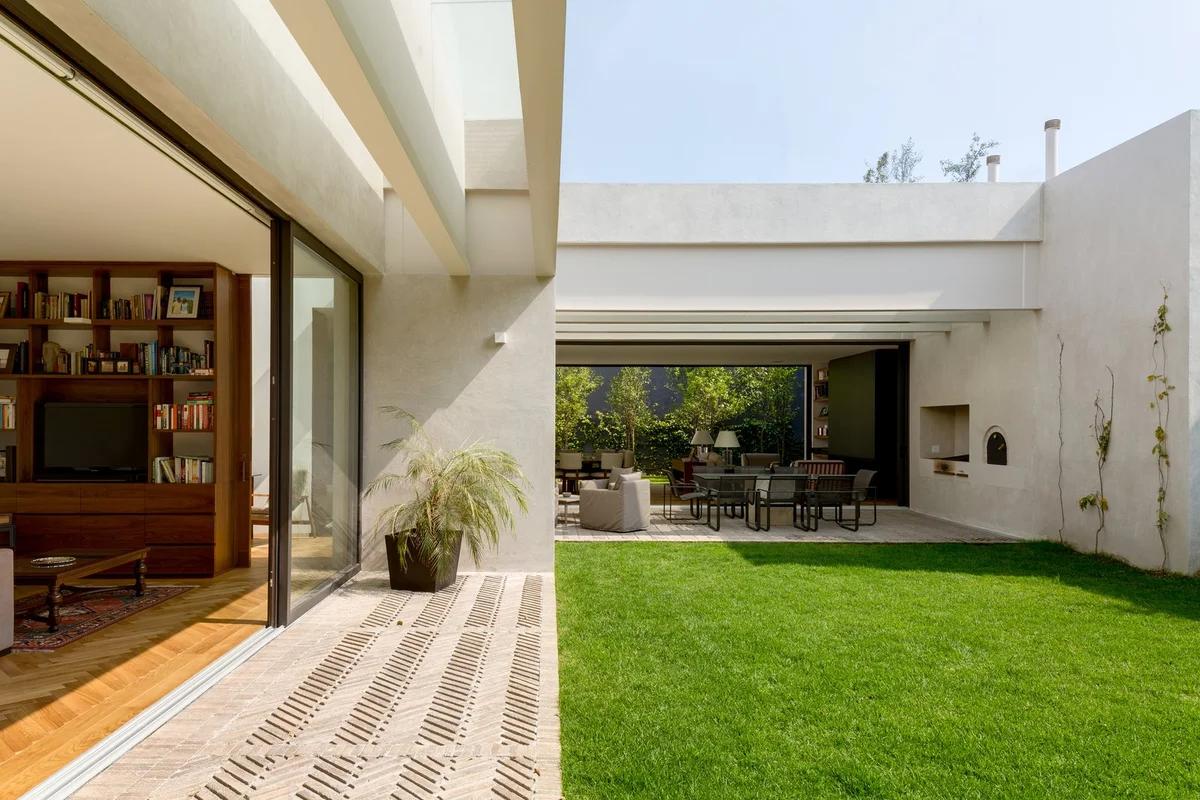 Ubicada en la colonia San Ángel de Ciudad de México, la Casa Jardín 58 se organiza en torno a un espacioso jardín central.