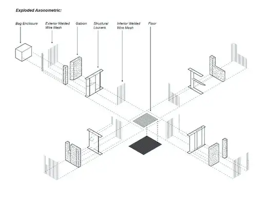 Dado que los aseos se ubicarían a alturas variables entre 3.200 y casi 4.000 metros, se optó por una construcción prefabricada en metal. La solución estructural utilizada tiene como referente el trabajo del arquitecto Toyo Ito y el ingeniero Cecil Balmond para el Serpentine Pavilion de 2002. Su particular universo de vanos y paredes trapezoidales se traduce aquí en un entramado de celosías rectangulares en acero.