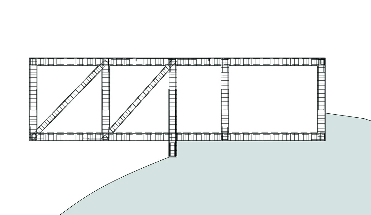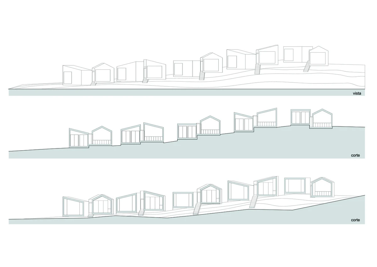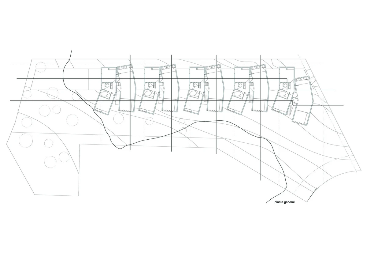 Por último, la disposición de los bloques favorece un juego de sombras particularmente intenso en las áreas de voladizo, unos espacios que emergen como símbolo de respeto al dejar la base de la colina casi intacta.