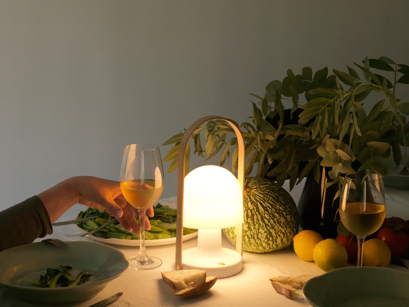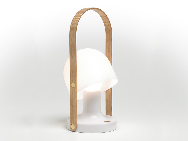 La lámpara Greta es uno de los ejemplos que muestran el buen trabajo que realizan, en madera de roble y asa en cuero natural. El cuidado diseño de esta pieza caracteriza el trabajo de esta firma, sin olvidar nunca la calidad de las mismas.
