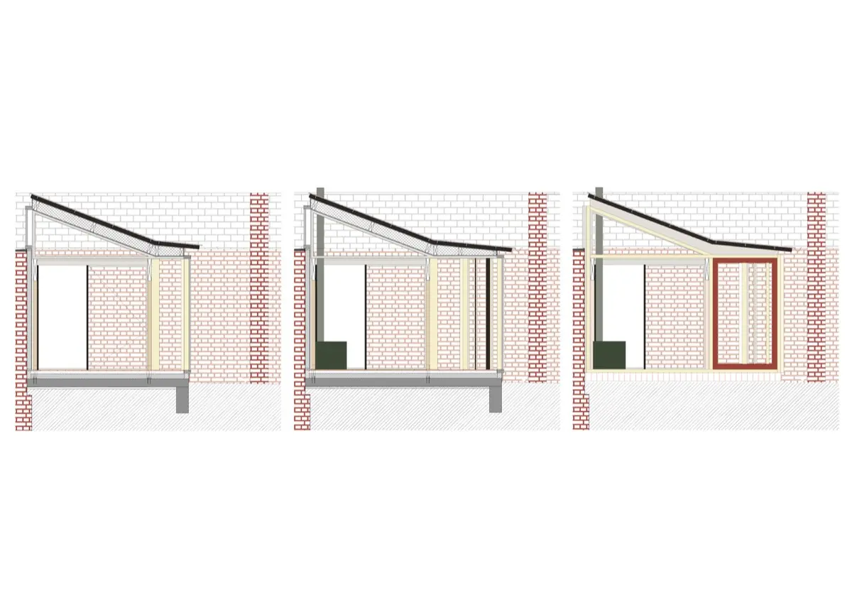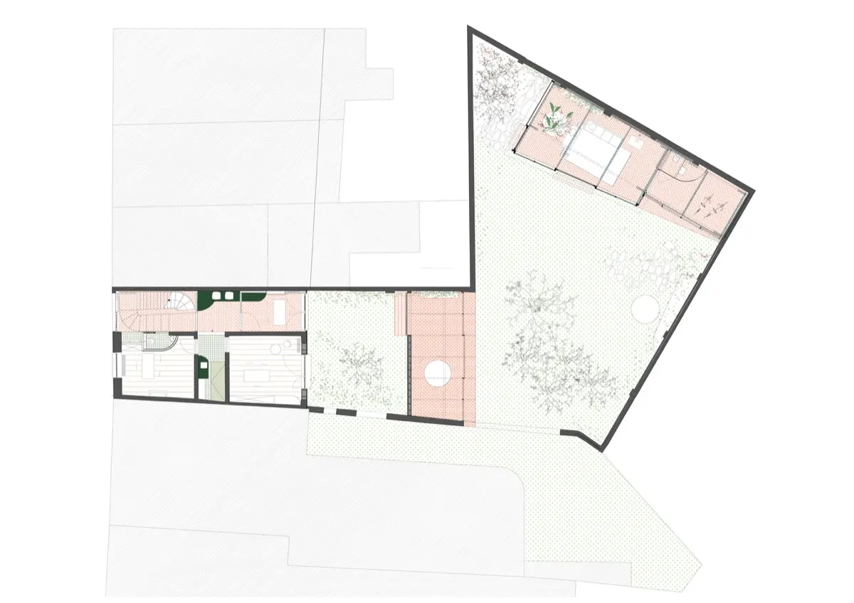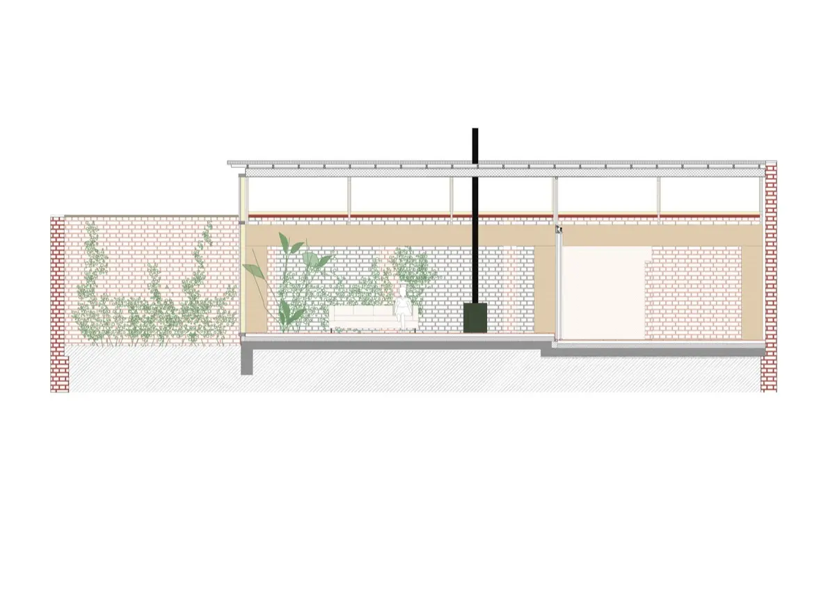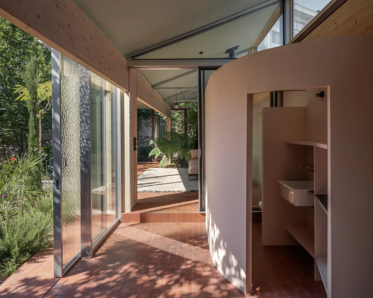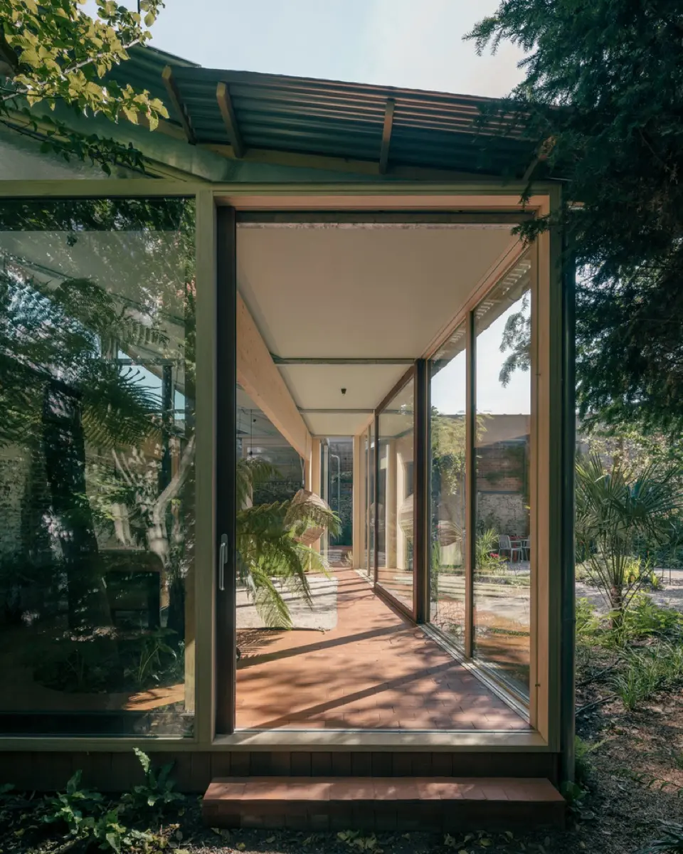 Otro elemento notable es la paleta de materiales utilizada. La combinación de madera, hormigón y vidrio no solo aporta una estética minimalista y moderna, sino que también dialoga con los elementos originales de la casa. Esta mezcla de texturas y materiales añade una capa de profundidad y calidez al diseño.