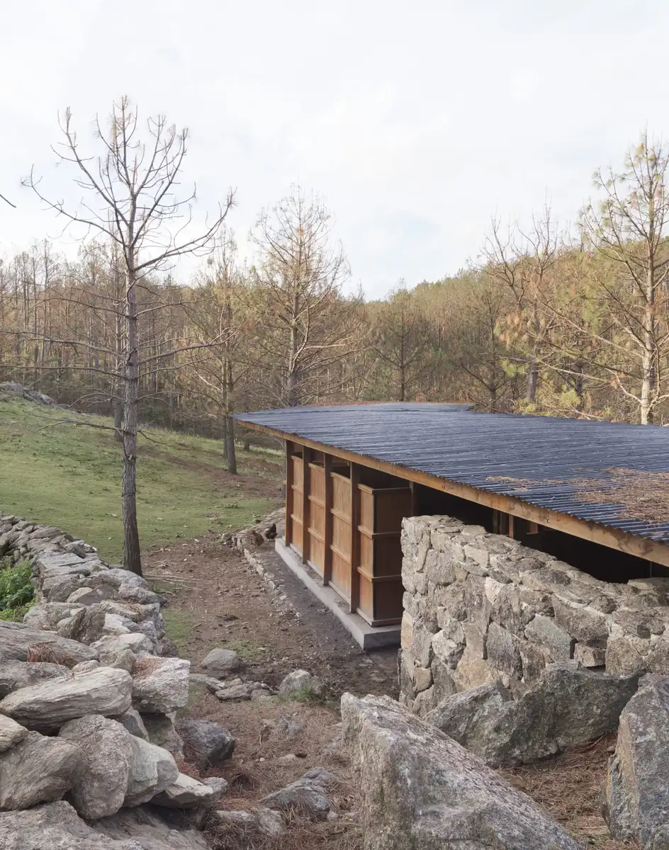 Una premisa tan interiorizada en su práctica habitual tiene también su reflejo en los pequeños encargos, como las Caballerizas CaRaJo. En este caso, se establece un diálogo directo con la naturaleza circundante, de la que toman los materiales y con la que se mimetizan.