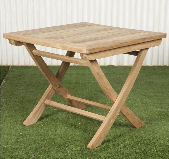 Si dispones de poco espacio, puedes optar por una mesa cuadrada de exterior plegable. Este mueble para exterior de líneas sobrias y rectas resiste muy bien el sol y la humedad.
