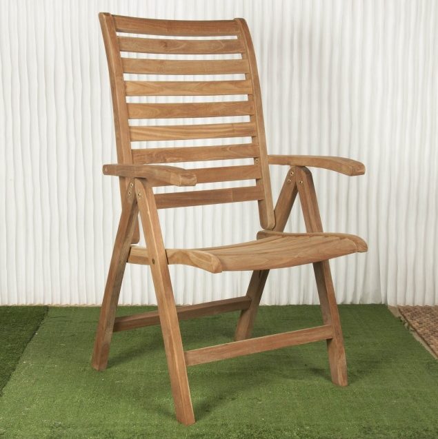 Para sentarse individualmente, la silla de exterior de teca modelo Venecia es perfecta. Una vez extendida, mide 107 centímetros de altura, 62 de ancho y 90 de fondo. A diferencia de otros muebles para exterior, en este caso los listones macizos están colocados en horizontal en lugar de en vertical, lo que se traduce en una mayor comodidad.