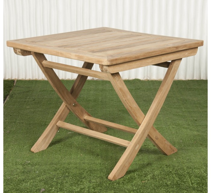 Si dispones de poco espacio, puedes optar por una mesa cuadrada de exterior plegable. Este mueble para exterior de líneas sobrias y rectas resiste muy bien el sol y la humedad.