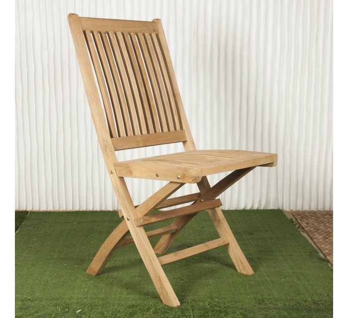 Para sentarse individualmente, la silla de exterior de teca modelo Venecia es perfecta. Una vez extendida, mide 107 centímetros de altura, 62 de ancho y 90 de fondo. A diferencia de otros muebles para exterior, en este caso los listones macizos están colocados en horizontal en lugar de en vertical, lo que se traduce en una mayor comodidad.