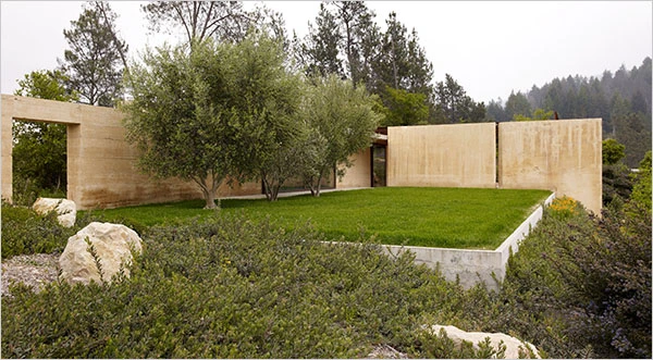En cuanto al paisajismo, se conservaron la mayoría de las especies autóctonas; los arboles de mayor envergadura se trasladaron temporalmente a otro lugar de al parcela y se replantaron después; se añadieron plantaciones, pero siempre de especies autóctonas como tanoaks, madroños y manzanitas.