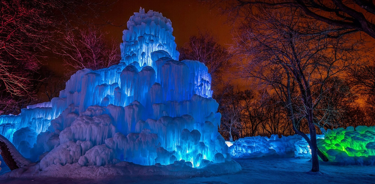 Sus enormes «castillos de hielo» atraen cada temporada a miles de visitantes de todas las edades. Realizados totalmente a mano, estos imponentes glaciares artificiales son todo un despliegue de túneles, laberintos, cascadas y toboganes de agua congelada.