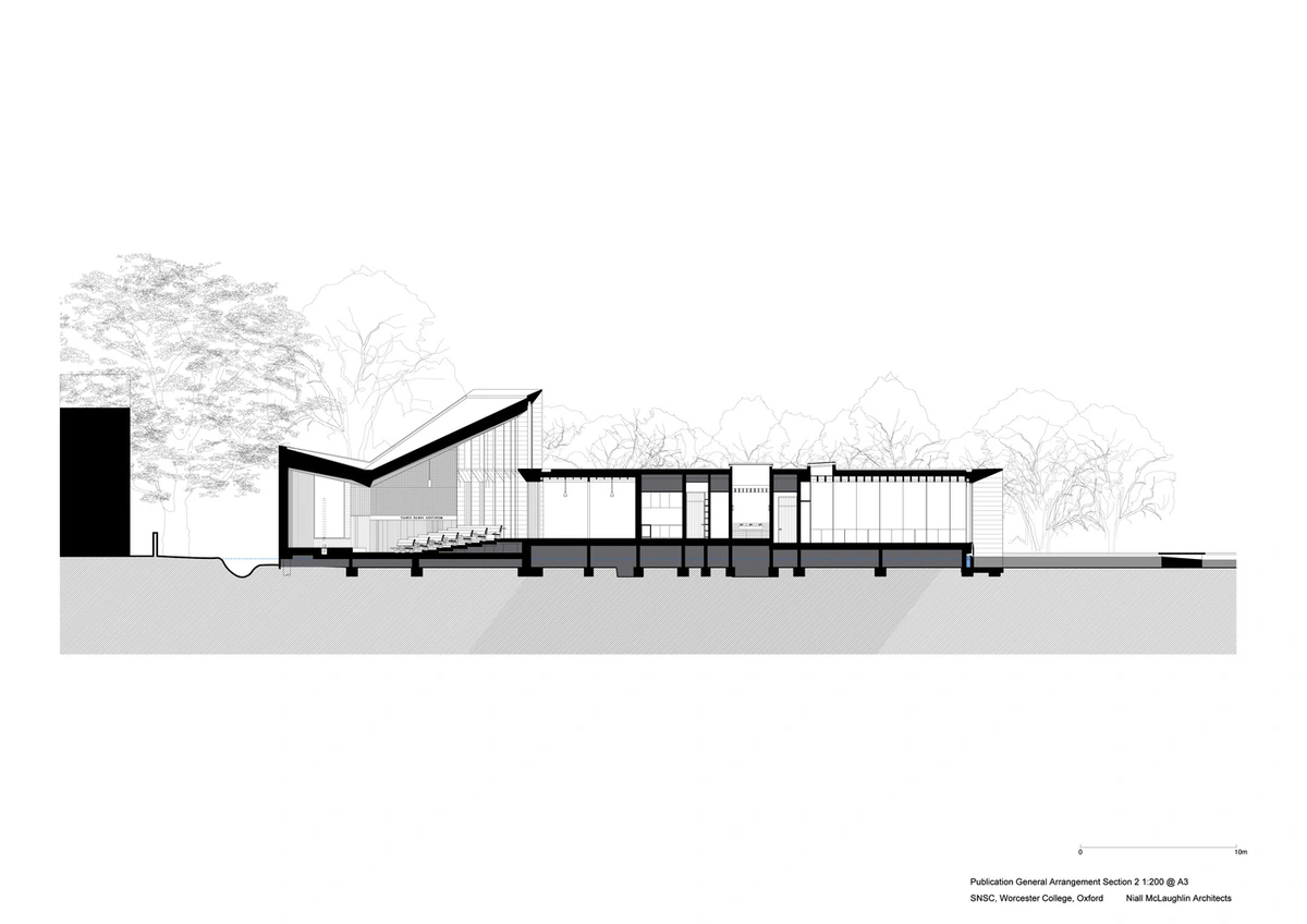 El Sultan Nazrin Shah Centre es el edificio más reciente del campus del Worcester College. Esta histórica institución educativa de la Universidad de Oxford necesitaba con urgencia un nuevo espacio destinado a usos académicos y eventos, así que encargó su construcción a la firma londinense Níall McLaughlin Architects.