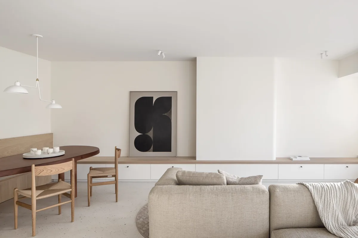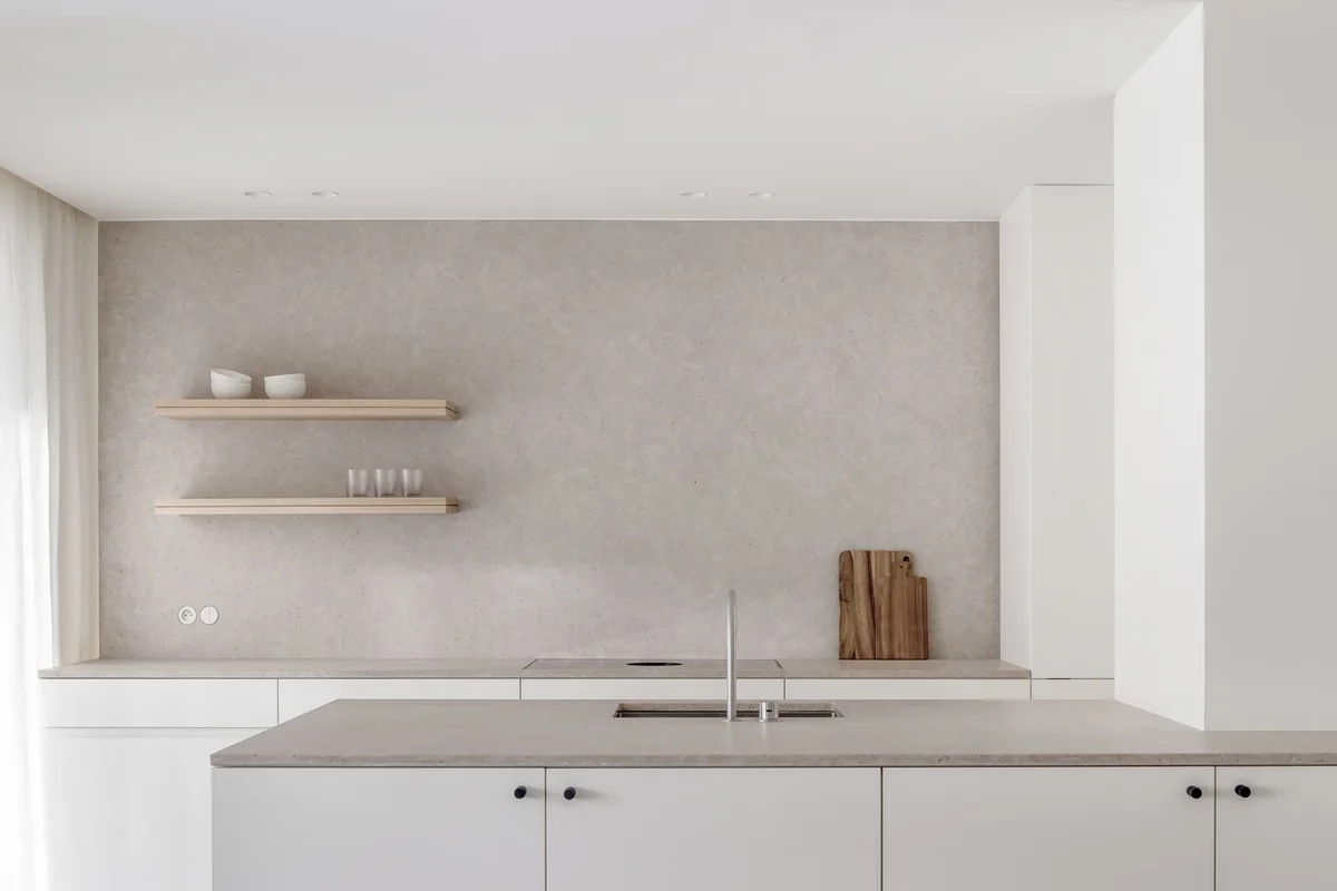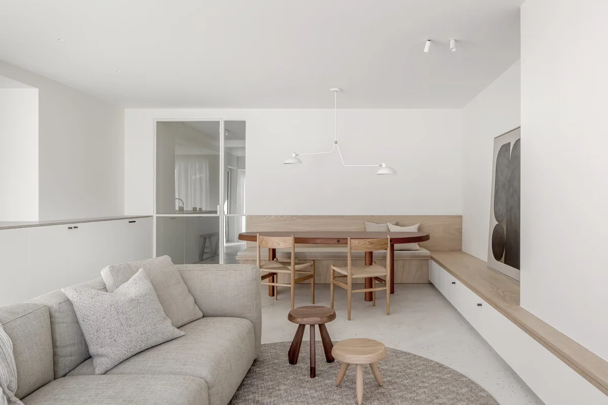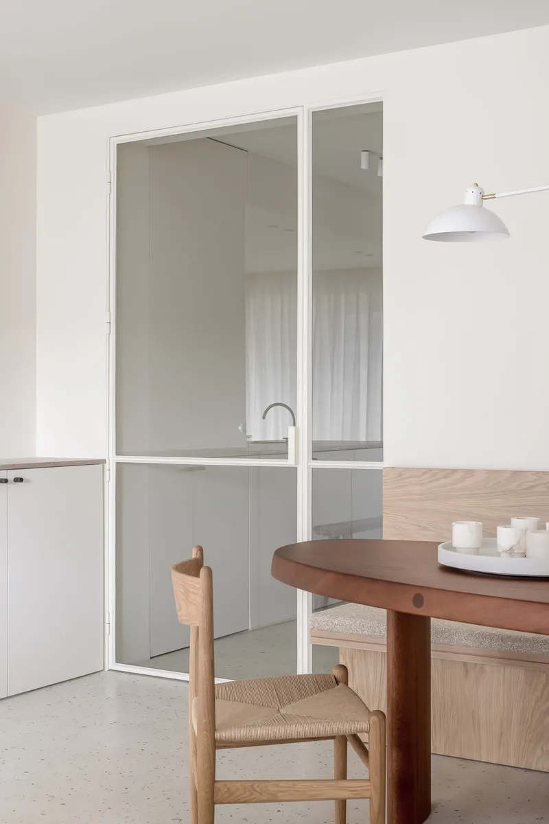 Un buen ejemplo de su labor es el proyecto BUN, la renovación integral de un apartamento de los años 60 en la localidad flamenca de Knokke. Situado junto a la costa, la premisa principal era conseguir un ambiente tranquilo y flexible para una familia numerosa.