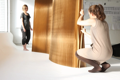 softwall y softblock son sistemas de separación y asientos modulares que utilizan estructuras flexibles en forma de panal; se expanden, contraen y flexionan formando espacios esculturales y a diferentes cotas. Se pueden plegar completamente para su almacenamiento y reutilizar en infinitas nuevas formas, sustituyendo las alternativas rígidas para separar y re-organizar el espacio.