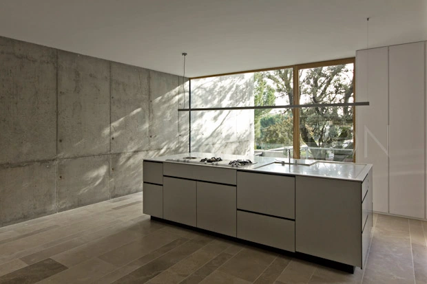 Una compleja excavación a 9 metros de profundidad permitió potenciar la luz en las plantas inferiores del edificio donde se ubican las zonas de trabajo. Como resultado, todas las habitaciones cuentan con grandes ventanales que reciben luz natural y que permiten disfrutar de la vegetación del terreno desde cualquier parte de la casa.