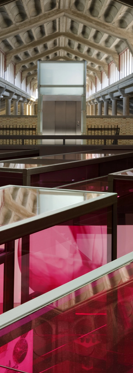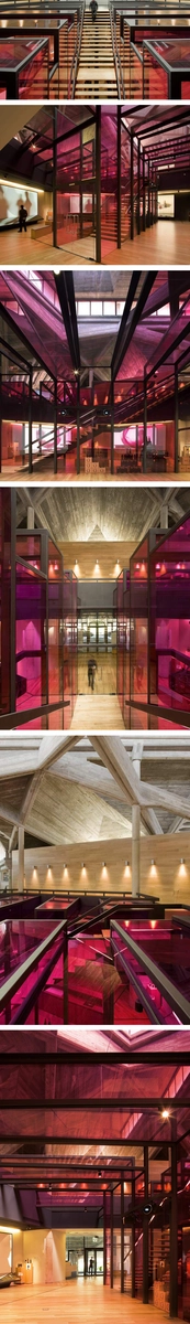 Situado en el interior de la nave industrial de la bodega Olarra, el proyecto consiste en la intervención en un espacio hexagonal, que es la intersección de tres edificios existentes. Este espacio es en realidad un núcleo, por lo que debe convertirse en un espacio principal para la exhibición y almacenamiento de los vinos, debe además, albergar una pequeña tienda y una zona de bar para la degustación de los mismos. En el nivel superior, los espacios existentes están rediseñados para incluir una serie de oficinas, salas de reuniones profesionales, y un espacio profesional para la cata de vinos.