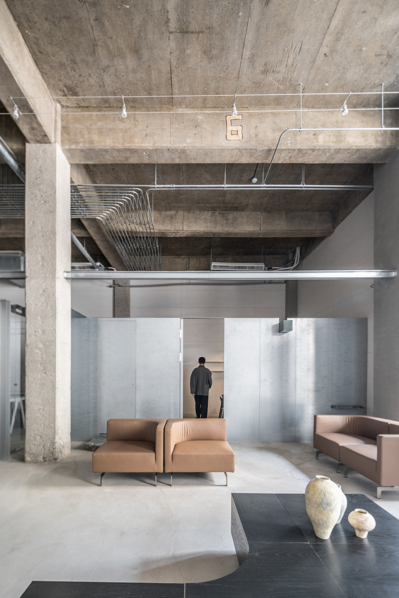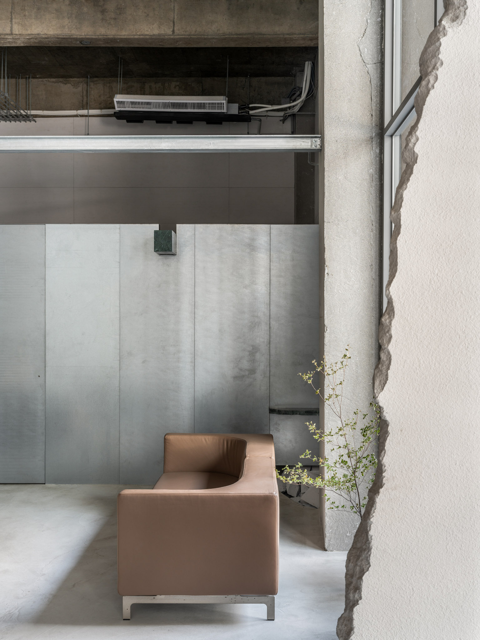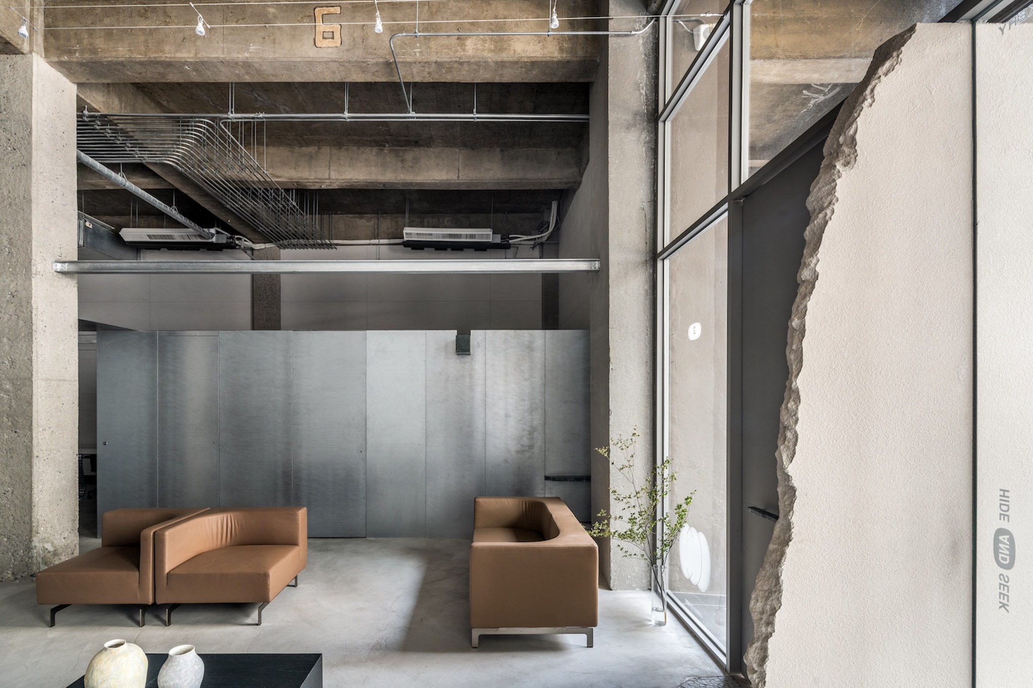 El nombre “Oskay” remite al término utilizado por niños taiwaneses en los años 70 y 80 durante juegos de escondite. Esta referencia se traduce arquitectónicamente en rincones escondidos, muros que disimulan transiciones y elementos que invitan a explorar. Esta metáfora del esconderse se despliega en un antiguo almacén con casi seis metros de altura, donde la estructura original —vigas y pilares— se conserva a propósito como homenaje a su historia industrial.