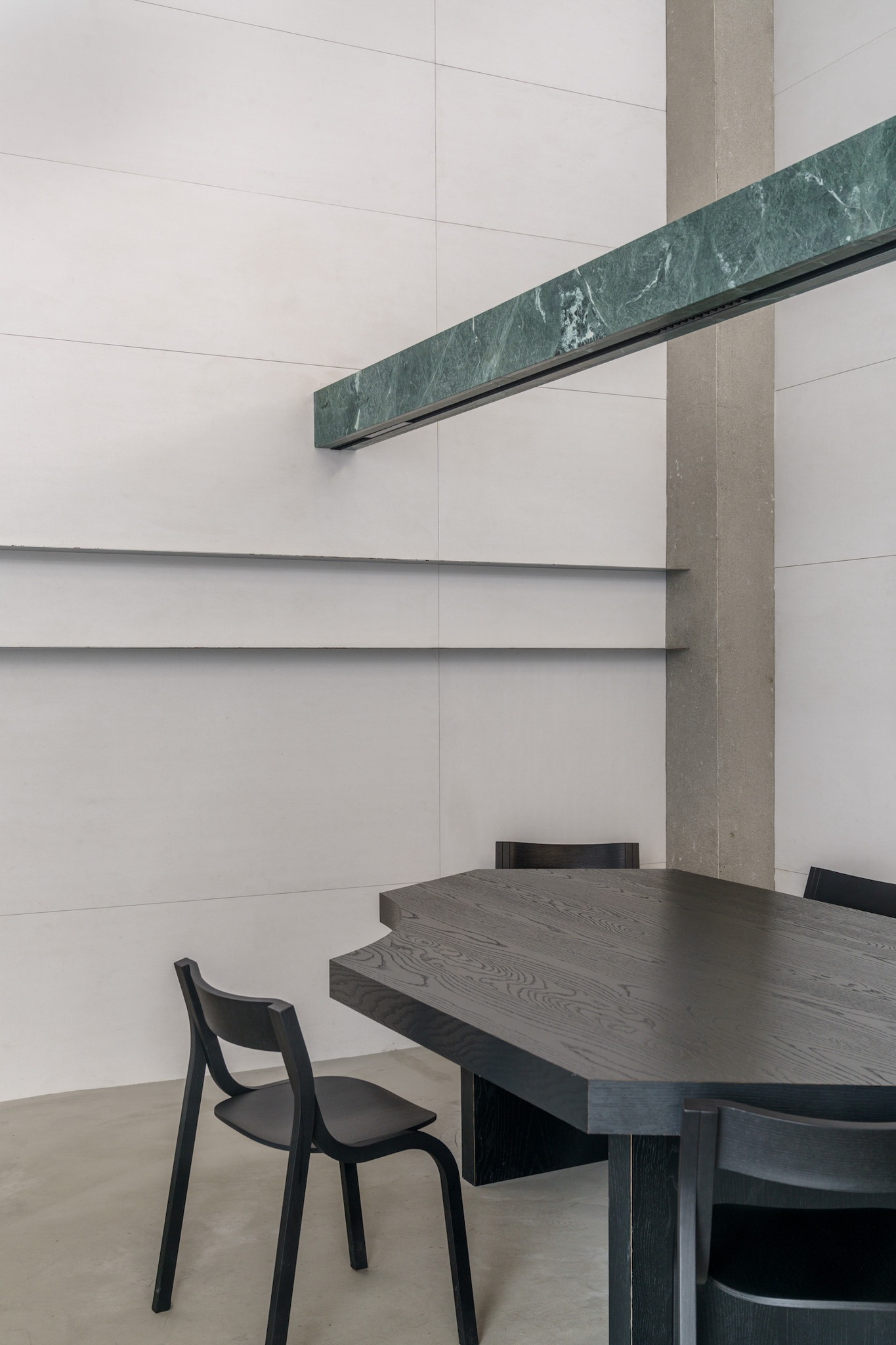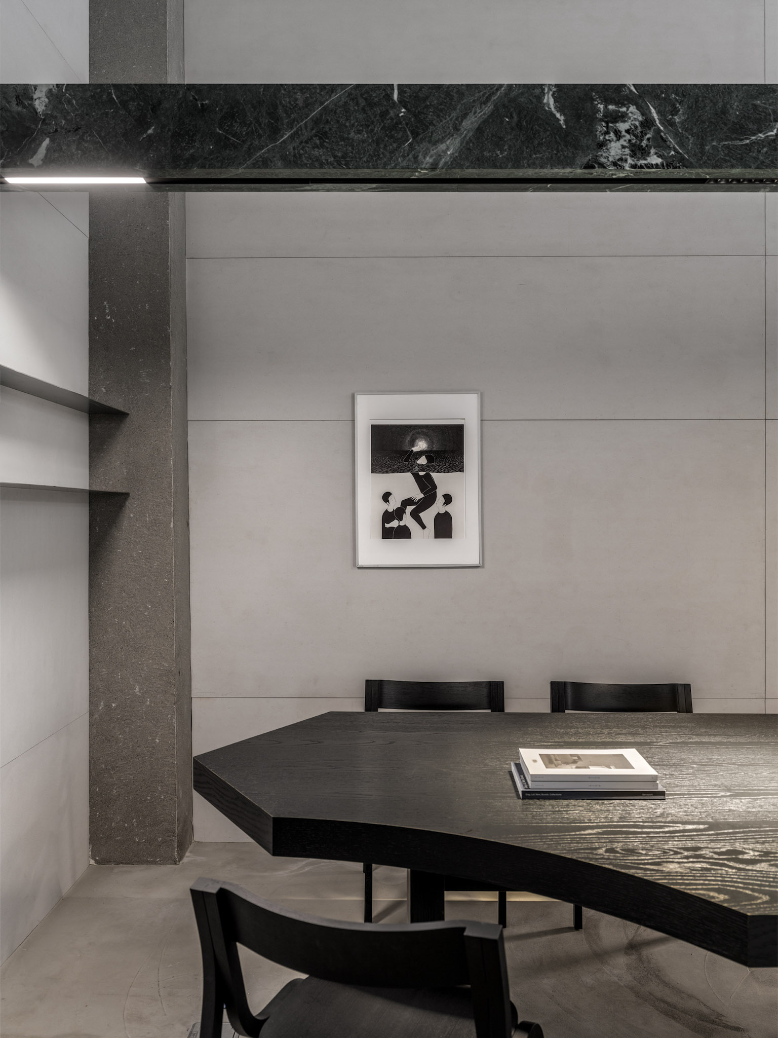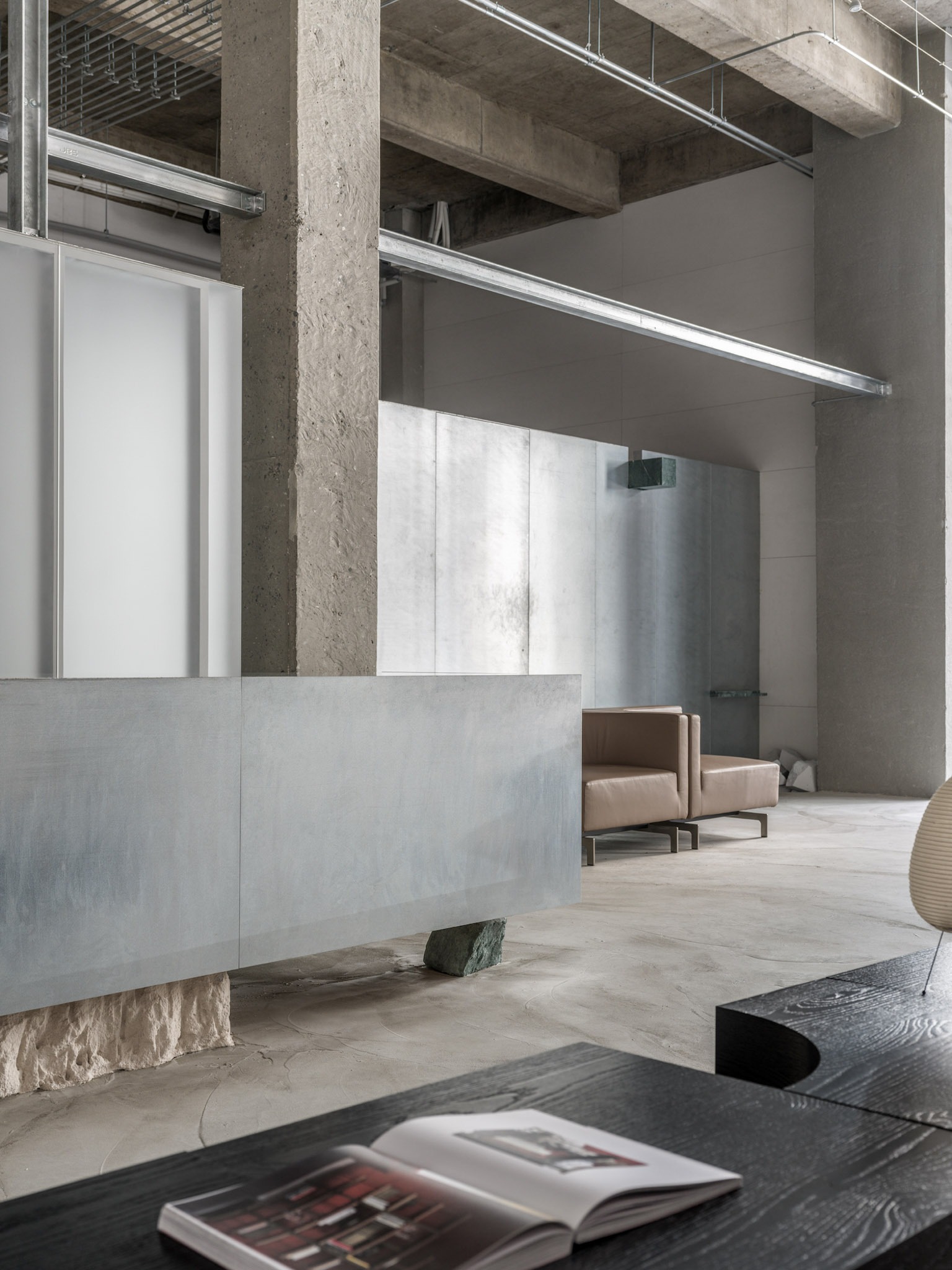 El nombre “Oskay” remite al término utilizado por niños taiwaneses en los años 70 y 80 durante juegos de escondite. Esta referencia se traduce arquitectónicamente en rincones escondidos, muros que disimulan transiciones y elementos que invitan a explorar. Esta metáfora del esconderse se despliega en un antiguo almacén con casi seis metros de altura, donde la estructura original —vigas y pilares— se conserva a propósito como homenaje a su historia industrial.