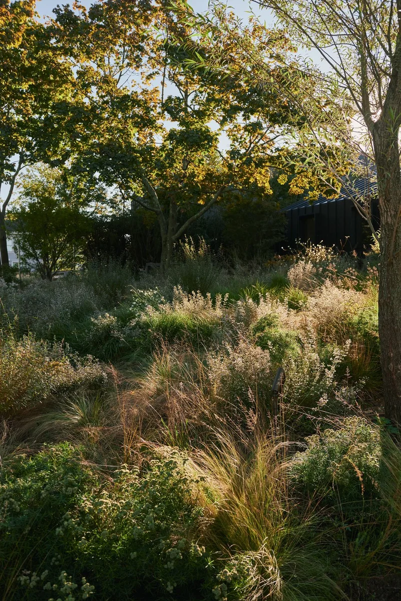 de Mauro + de Mauro diseña un paisaje de plantas nativas polinizadoras en Montauk Highway con la sostenibilidad como prioridad. En la propiedad de Bridgehampton Native, diseñado por Martin Architects, crece un jardín que busca conectar con la naturaleza en su forma más esencial. Un paisajismo sostenible y silvestre.
