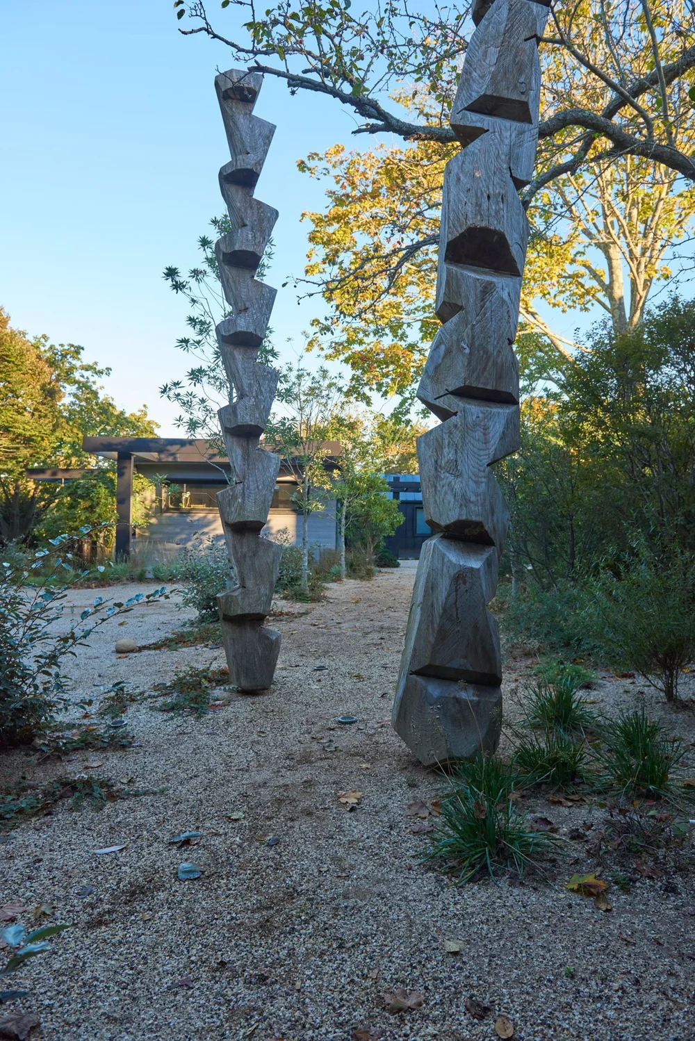 Martin Architects se inspira en la belleza del entorno nativo del East End, así como en paisajes europeos más áridos. Basándose en estas referencias, se eligió polvo de piedra natural para la entrada del camino y las áreas de estacionamiento, consiguiendo una calidad tonal apagada que complementa los plateados y verdes del paisaje.