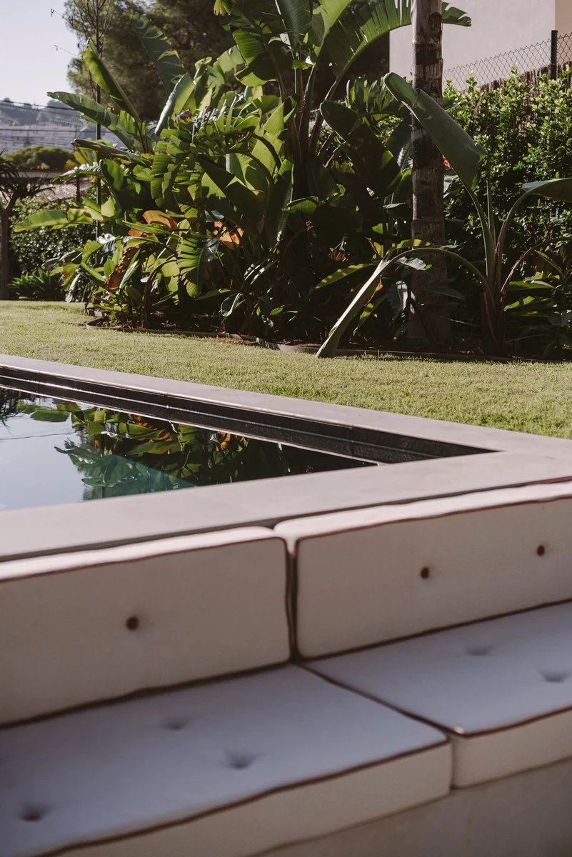 Si a la paz que logra el interiorismo le sumamos la terraza con piscina de agua salada y un jardín con árboles frutales y hierbas aromáticas, el objetivo de desconexión urbana está más que cumplido.