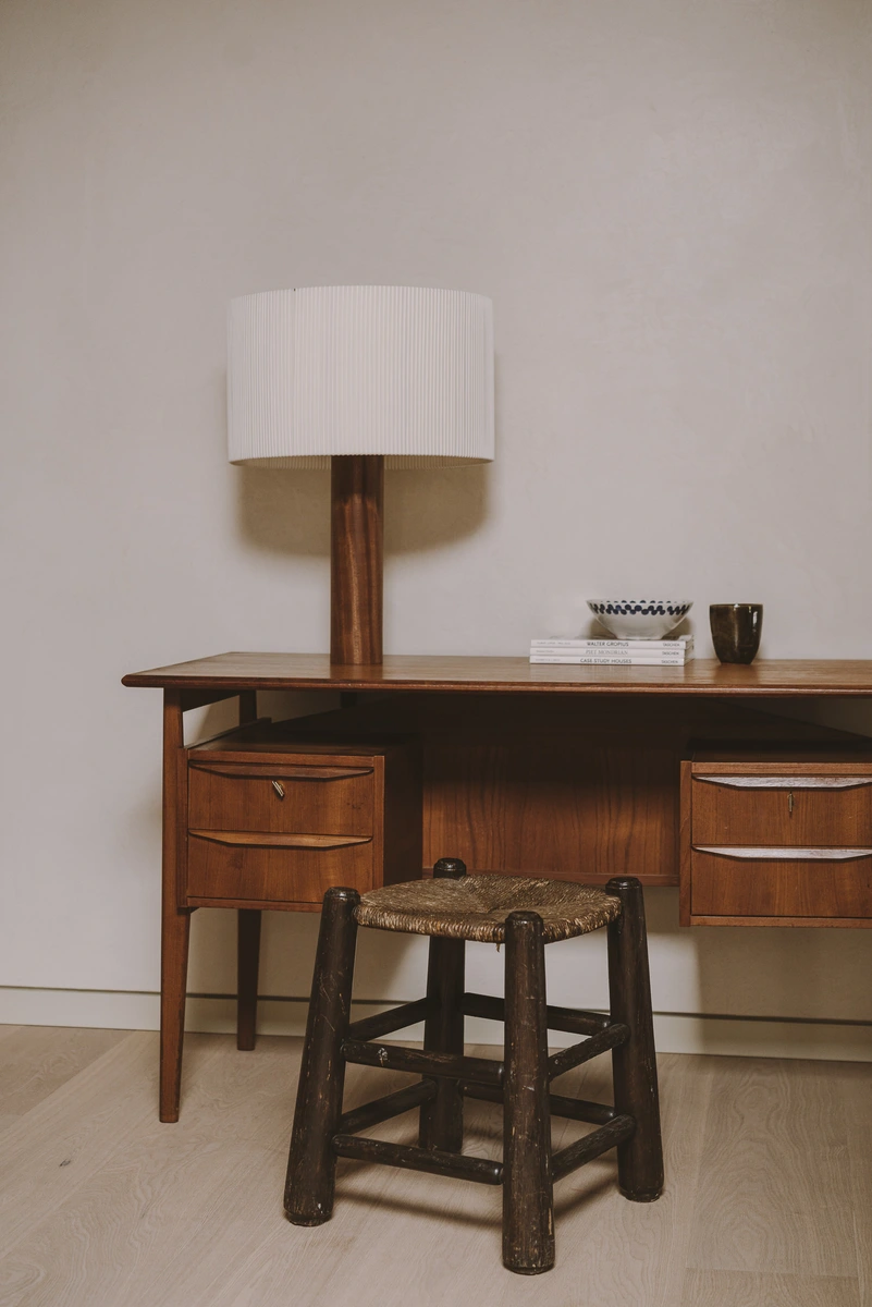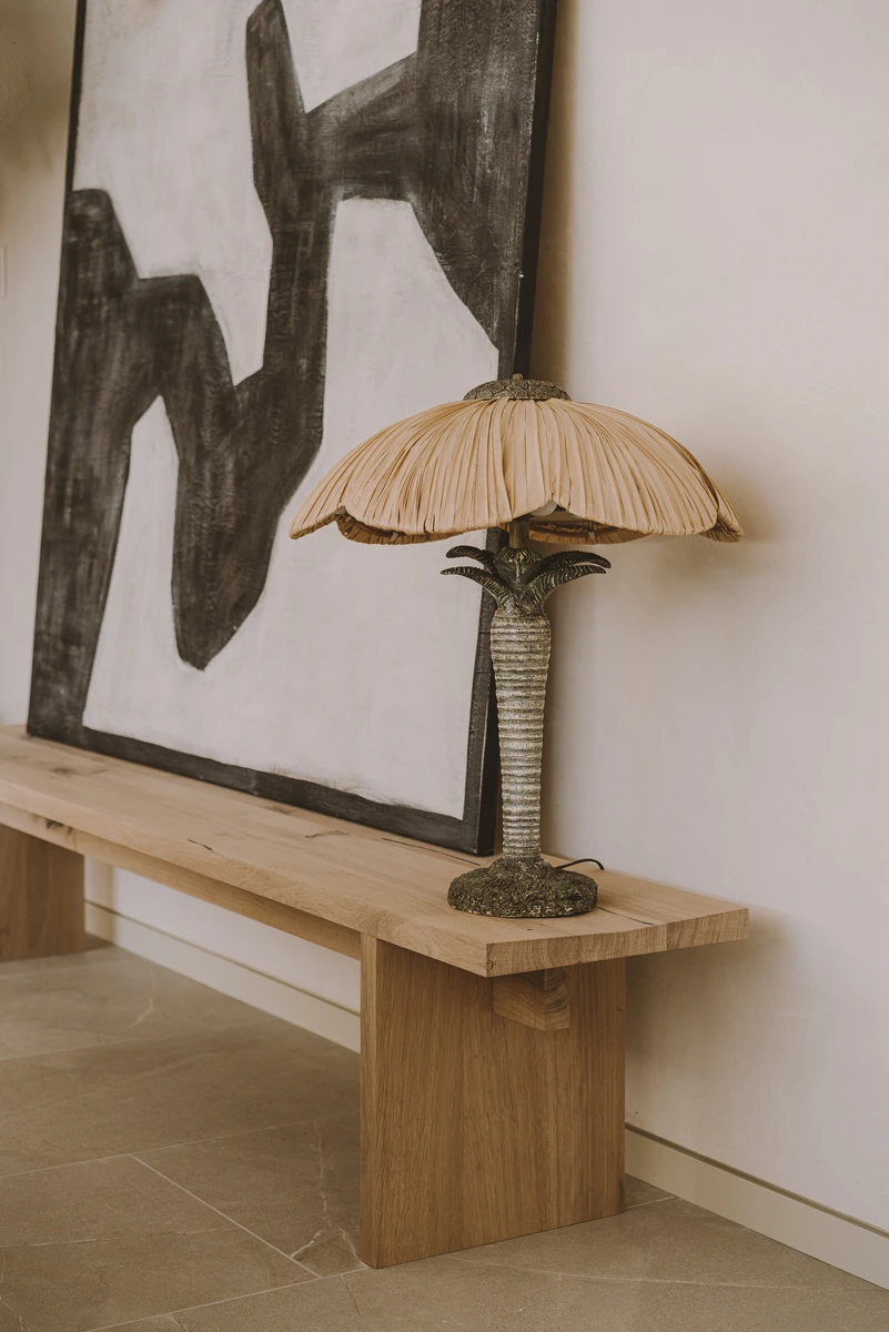 También se incorporaron múltiples elementos vintage, como un par de lámparas de latón con pantallas de bambú y una consola del mismo material en uno de los dormitorios. Y tras varias incursiones en galerías de Palma, el equipo añadió piezas con sabor local: un cuadro de Jaume Roig o diversas piezas cerámicas de Joan Pere Català.