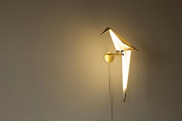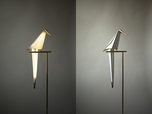 Diseñada por el arquitecto y diseñador Umut Yamac, la «Perch lamp», es una lámpara que representa un pájaro de papel y latón sobre una rama, sobre la que se balancea. El pájaro, fijado sobre una percha, se ilumina con elegancia balanceándose cuando lo tocas o con una brisa suave. La lámpara consigue iluminar a través del contacto existente, el pájaro y la percha que permite el equilibrio de éste y su balanceo, sin necesidad de cables, mientras ilumina.