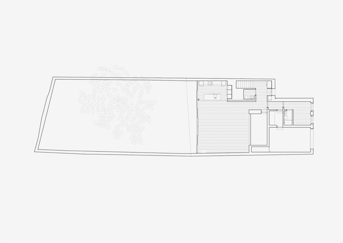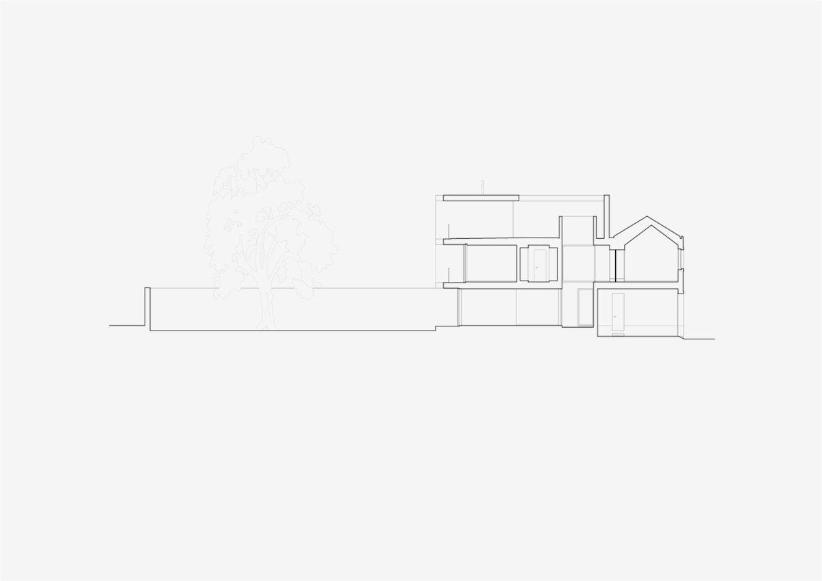 Por un lado, las zonas sociales se abren a un amplio jardín en la parte trasera, que está presidido por un frondoso jacarandá. Aquí, la incorporación de acristalamientos deslizantes de suelo a techo asegura una abundante iluminación. Así mismo, al proyectar la conexión entre los citados volúmenes, se diseñó un patio interior para llevar la luz natural al centro del edificio. En realidad, estas dos características ocultas para el viandante constituyen los principales atractivos de la vivienda.