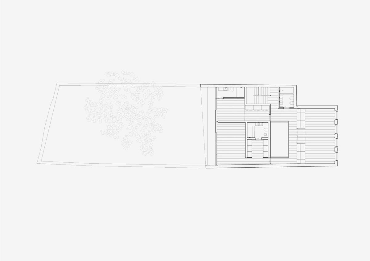 El tronco del gran jacarandá no bloquea las vistas desde el salón-comedor o la cocina de la planta baja, mientras que su copa aporta privacidad a los dormitorios del primer piso, que alberga también dos estancias adicionales orientadas al este.