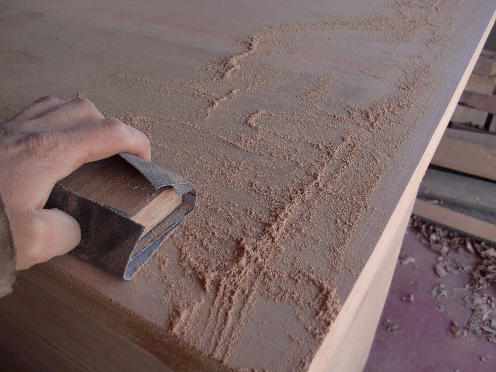 A la hora de hacerlo, recuerda que la dirección debe ser la misma que la de la veta de la madera para evitar que queden marcas.
