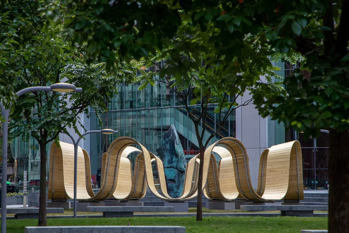 Es lo que ha sucedido con la llamativa instalación «Please Be Seated» (Por favor, siéntese) del diseñador británico Paul Cocksedge. Esta fantasía ondulante fue encargada por Broadgate, un complejo de oficinas y comercios junto al distrito financiero de Londres, para materializar el ritmo cambiante de la comunidad que vive y trabaja allí.