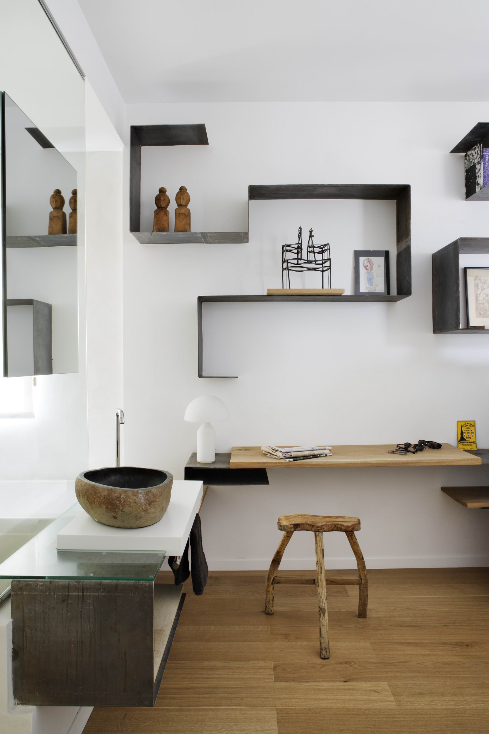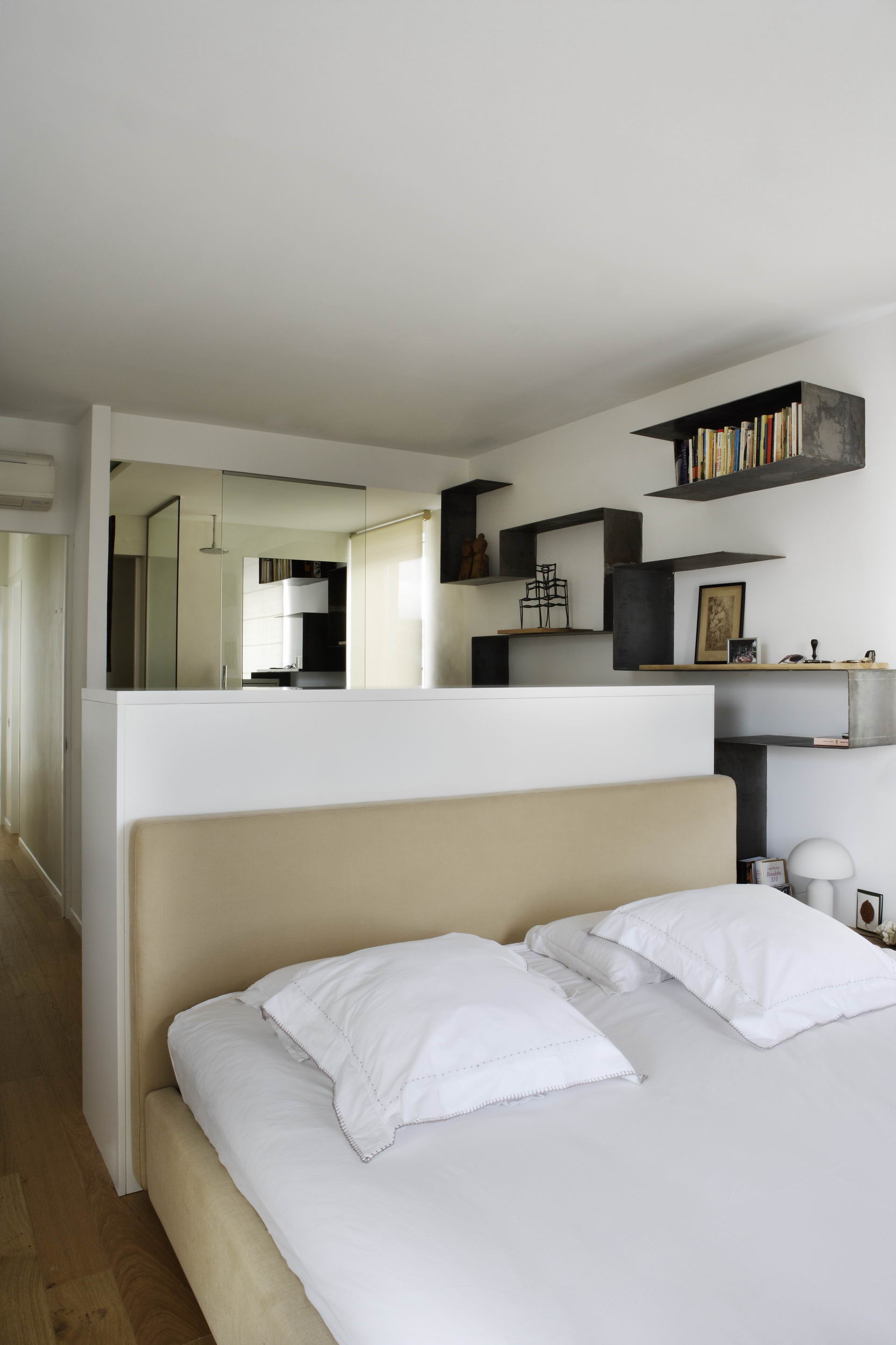 La fachada se aisló con lana de roca y se buscó la mejor orientación de cara al ahorro energético y el confort térmico durante los meses de invierno. Para el pavimento, se utilizó madera natural con un tratamiento especial para toda la superficie (baños incluidos) que amplia y unifica el espacio. En el dormitorio principal se trabajó para que la propia arquitectura formara parte de la decoración: la chapa de hierro incrustada en la pared recorre y une el espacio con el baño en un lenguaje común del hierro que se va transformando de un lado a otro.