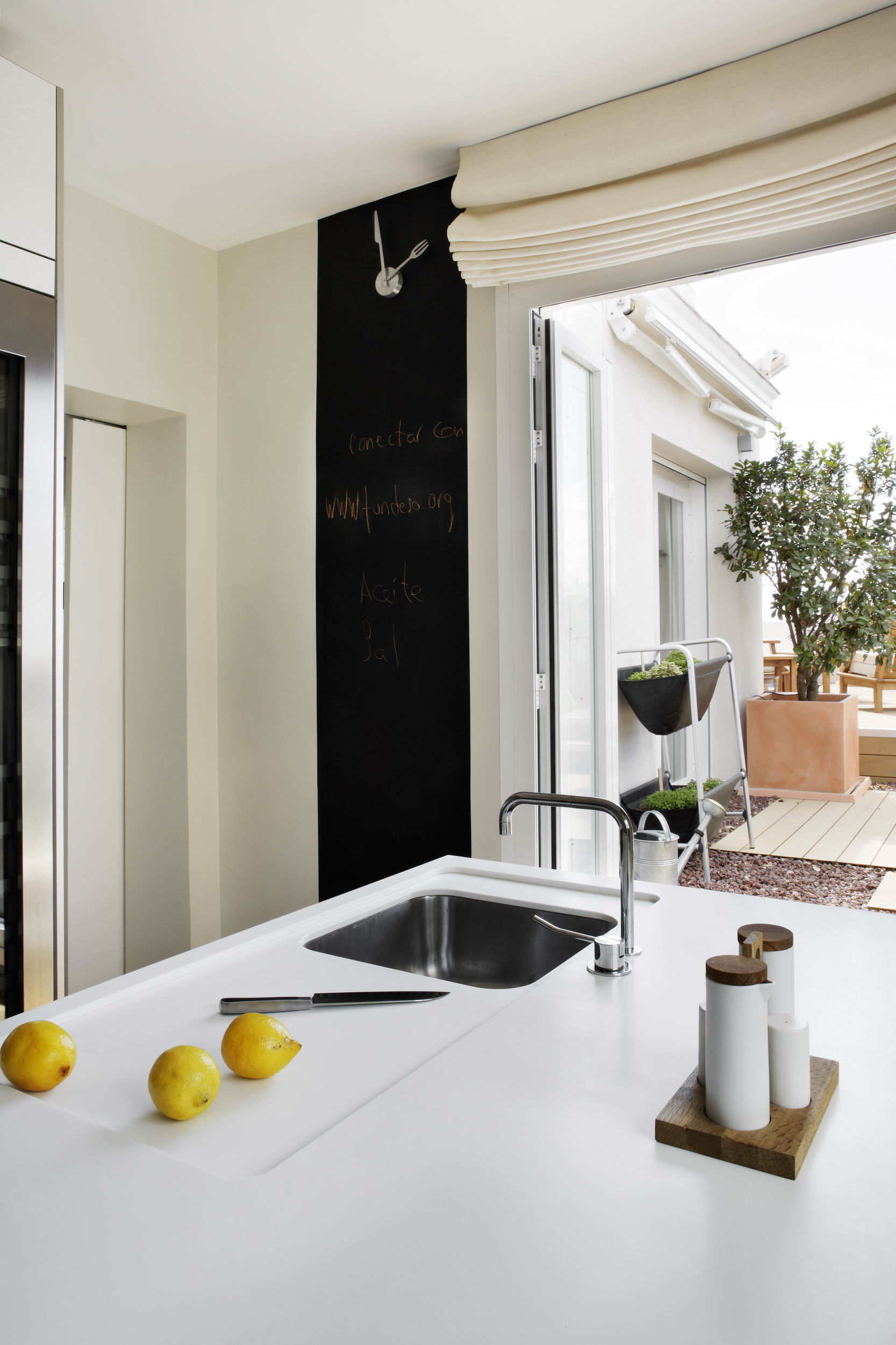 Reforma integral de una típica casa antigua de Madrid de 180m², muy compartimentada y oscura, fruto de sucesivas reformas. El objetivo principal fue reordenar el espacio para dar importancia a las zonas comunes y vincular éstas con la terraza existente. Se invirtió la distribución original cancelando temporalmente la entrada destinada al servicio y ubicando ahí la zona de invitados (dormitorio y baño). Los espacios públicos -cocina y salón- giran en torno a la terraza.