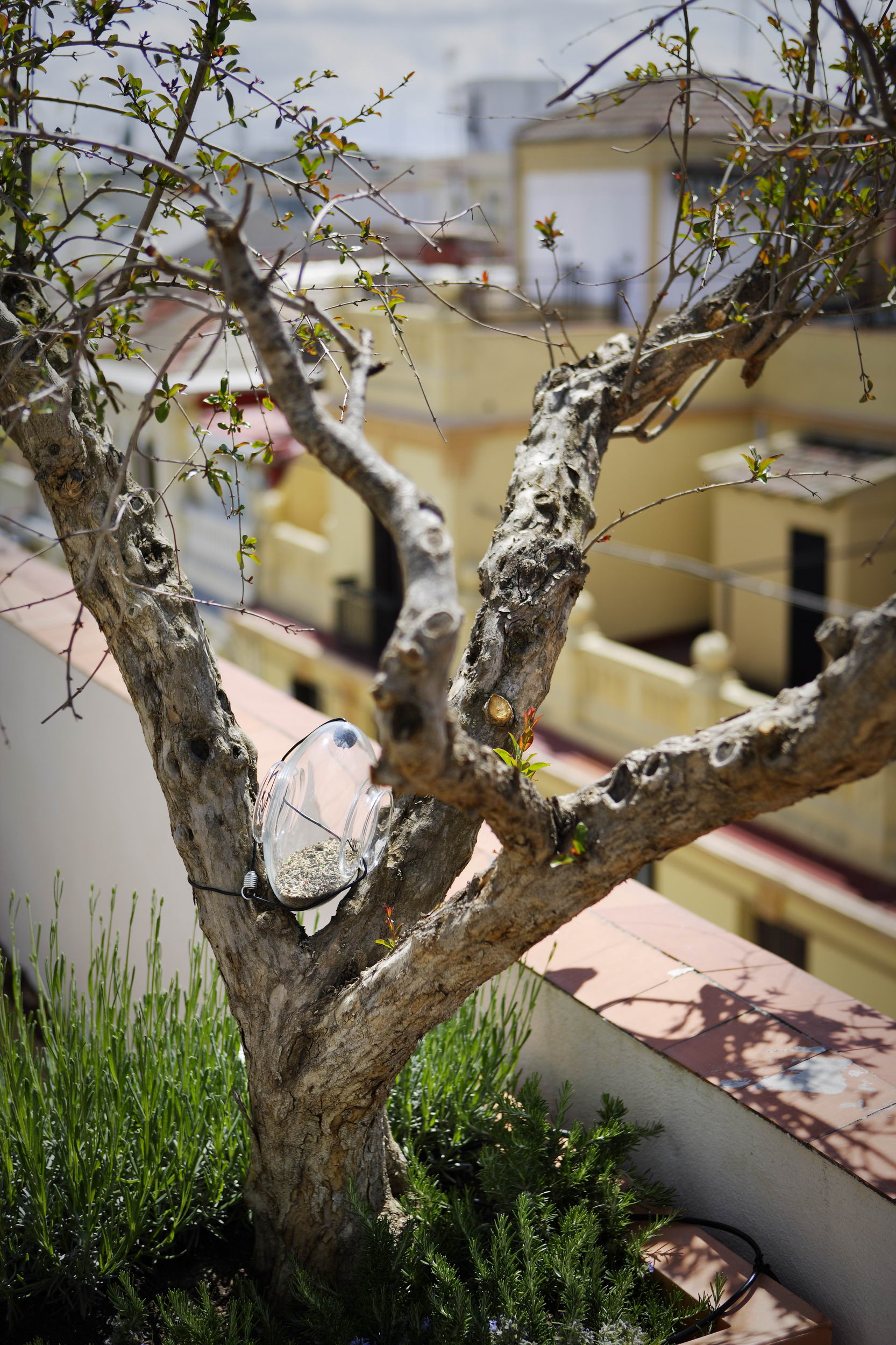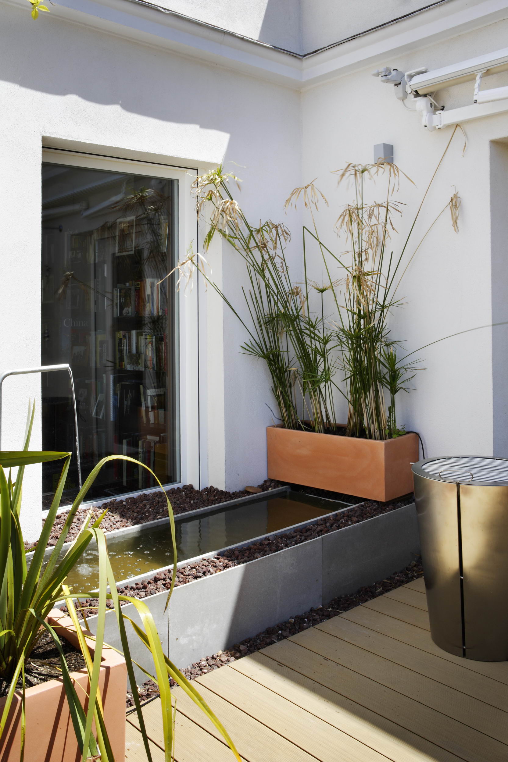 Para disfrutar del exterior durante largas temporadas y amortiguar el ruido de la ciudad, se construyó una fuente en la terraza y se preparó para el cultivo exterior.