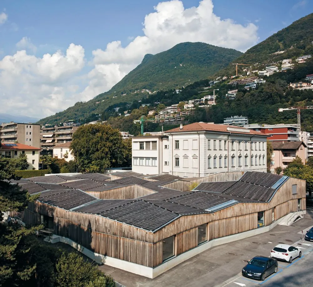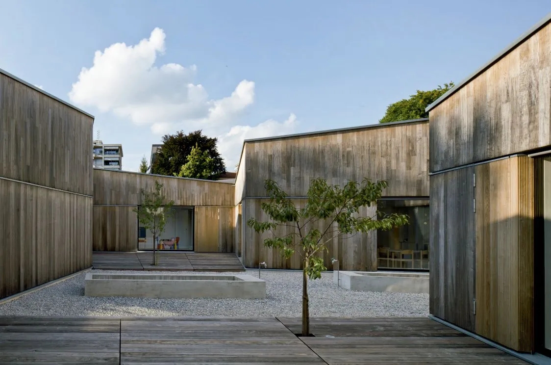 El barrio de Cassarate, en la ciudad suiza de Lugano, alberga desde 2014 una guardería que rompe con muchos esquemas. En primer lugar, su diseño continuo de una sola altura llama enseguida la atención en un entorno con edificios de viviendas de 3 a 8 plantas y locales comerciales.
