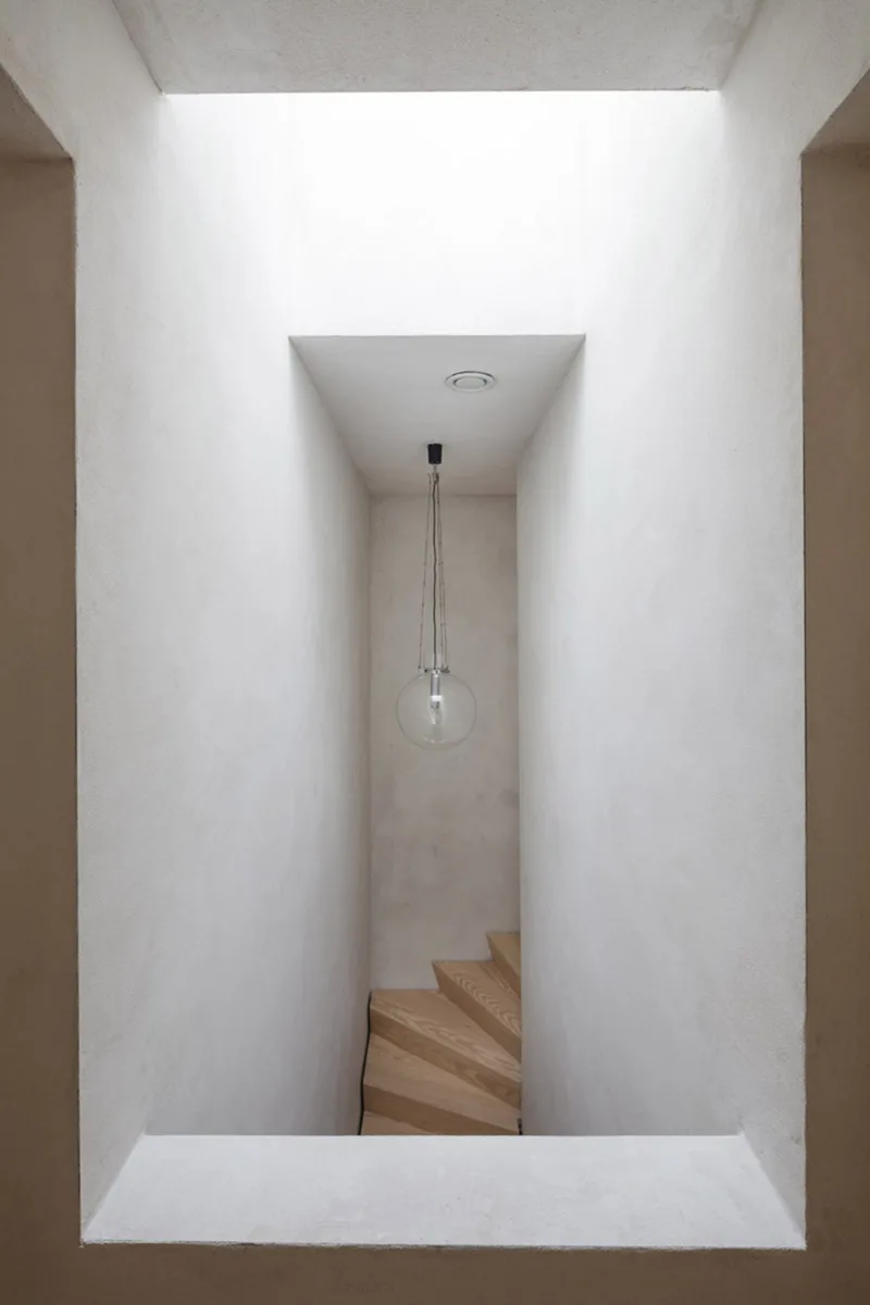 Los generosos acristalamientos en todos los niveles crean también un ambiente cálido en el que predominan los tonos claros –hormigón pulido y tabiques enlucidos con una mezcla de arena fina, cal y polvo de mármol–, combinados con diferentes maderas.
