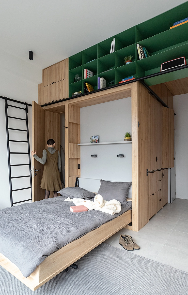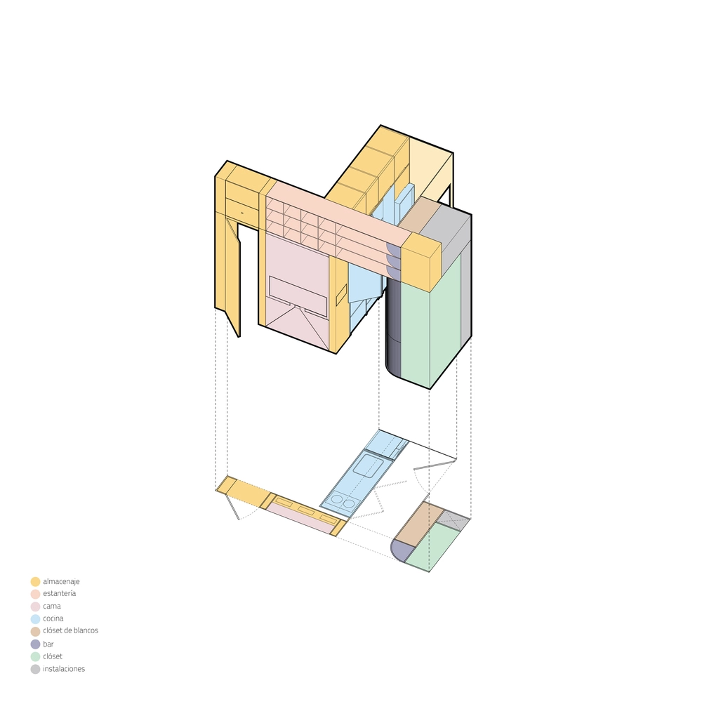 El planteamiento de proyecto nace de la necesidad de resolver las limitaciones de espacio y forma de las unidades habitacionales de la actualidad, tratando de proponer arquitectónicamente una nueva manera de habitar estos espacios, relacionada con la accesibilidad y movilidad urbana y social de nuestros días. Se genera así una solución, un objeto, un mueble, una arquitectura como respuesta.