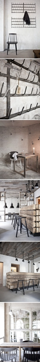 En Conpehague (Dinamarca). Es el resultado de la colaboración de Norm Architects, Menu (estudio de diseño) y Cofoco (empresa de hostelería). Un local moderno y urbano, con aspecto de granja por sus referencias al mundo rural y romántico. Un pequeño universo creado a partir de contrastes y en los que la tradición el diseño escandinavo se funden en uno solo.