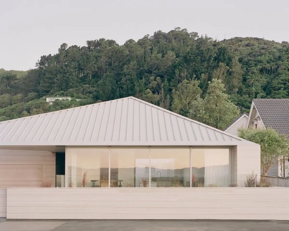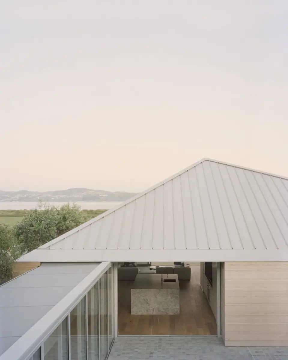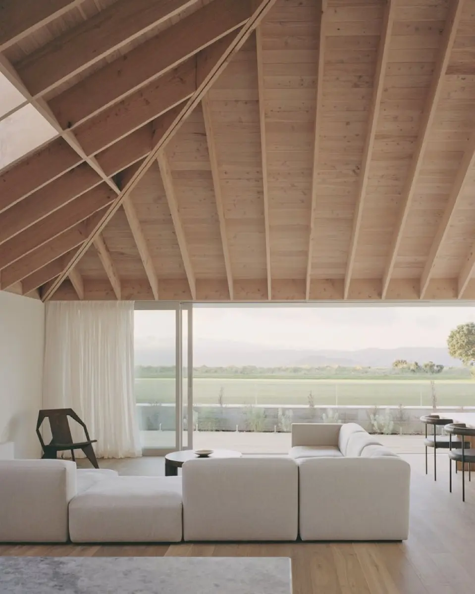 La estructura, un lienzo de líneas puras y tonos neutro, se convierte en un reflejo del entorno natural, casi como si la residencia emergiera de la tierra misma, consciente de su lugar en el mundo.