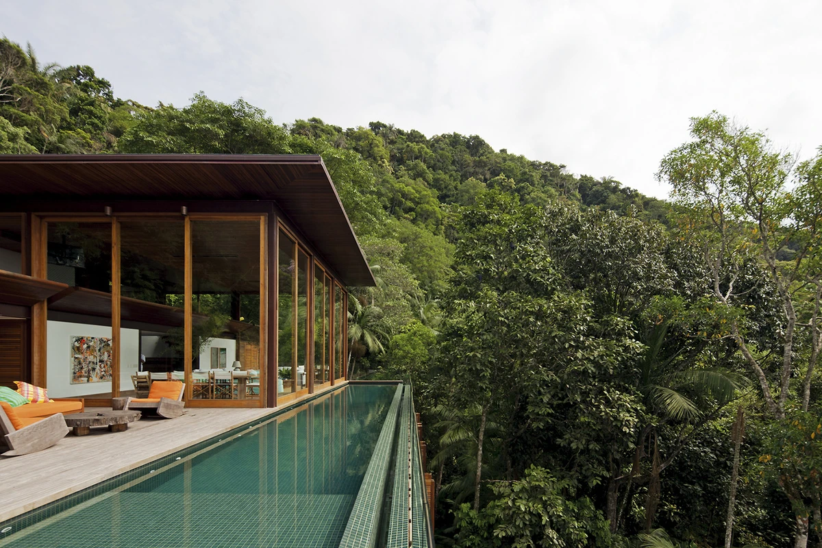 En el municipio brasileño de Guarujá, en el estado de San Pablo, se encuentra esta vivienda denominada AMB House, obra Bernardes & Jacobsen Arquitetura. La misma presenta una profunda integración con la naturaleza selvática circundante.
