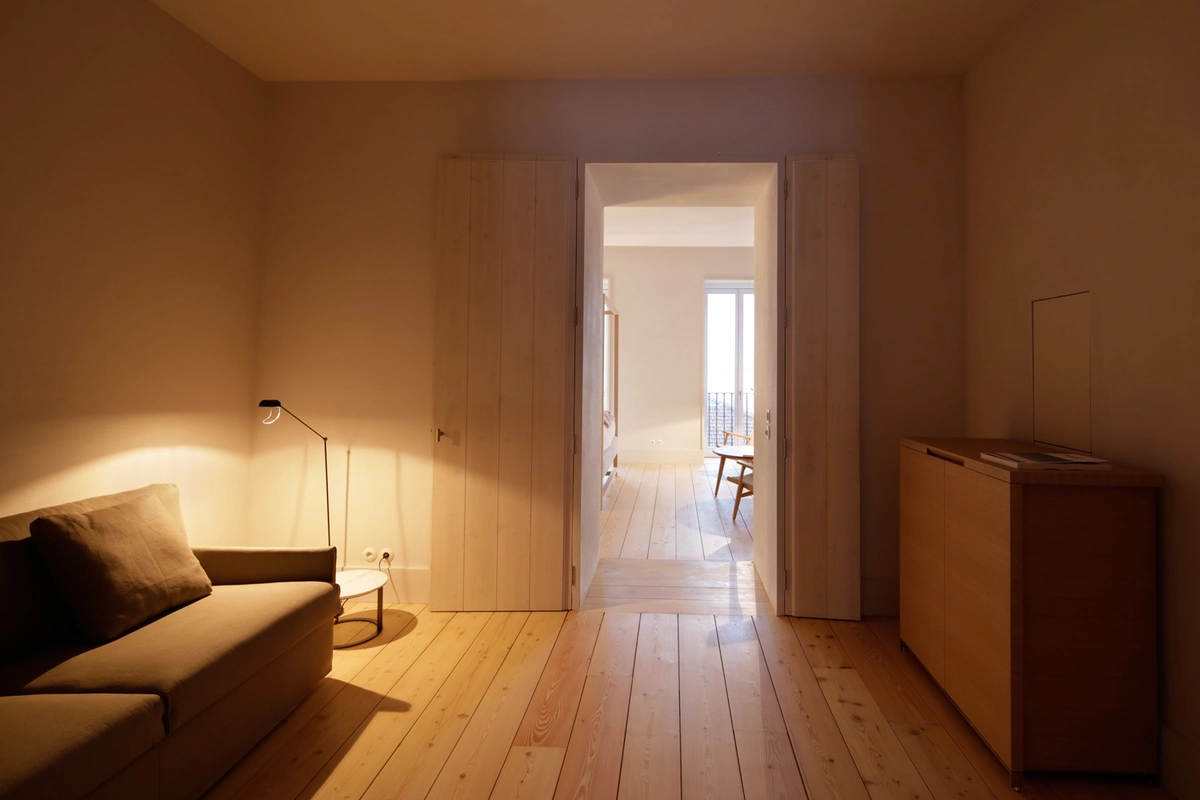 Con la intención de respetar el patrimonio original y proporcionar un ambiente sereno y confortable, se utilizaron como materiales de interior la famosa piedra caliza «Lioz» de Sintra –todo un clásico en los monumentos e iglesias lisboetas–, madera de pino para los suelos, y azulejos artesanales.