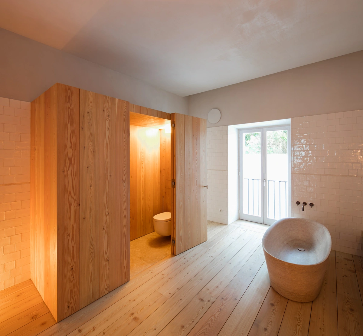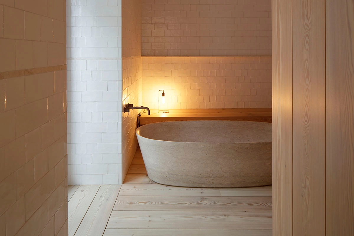 El color blanco omnipresente y la piedra caliza, que da carácter también a los baños, contribuyen asimismo a la sensación de bienestar de los huéspedes. Una vez más, la arquitectura sobria y equilibrada de Aires Mateus brilla en todo su esplendor, en este caso modernizando un rincón maravilloso del centro histórico de Lisboa.