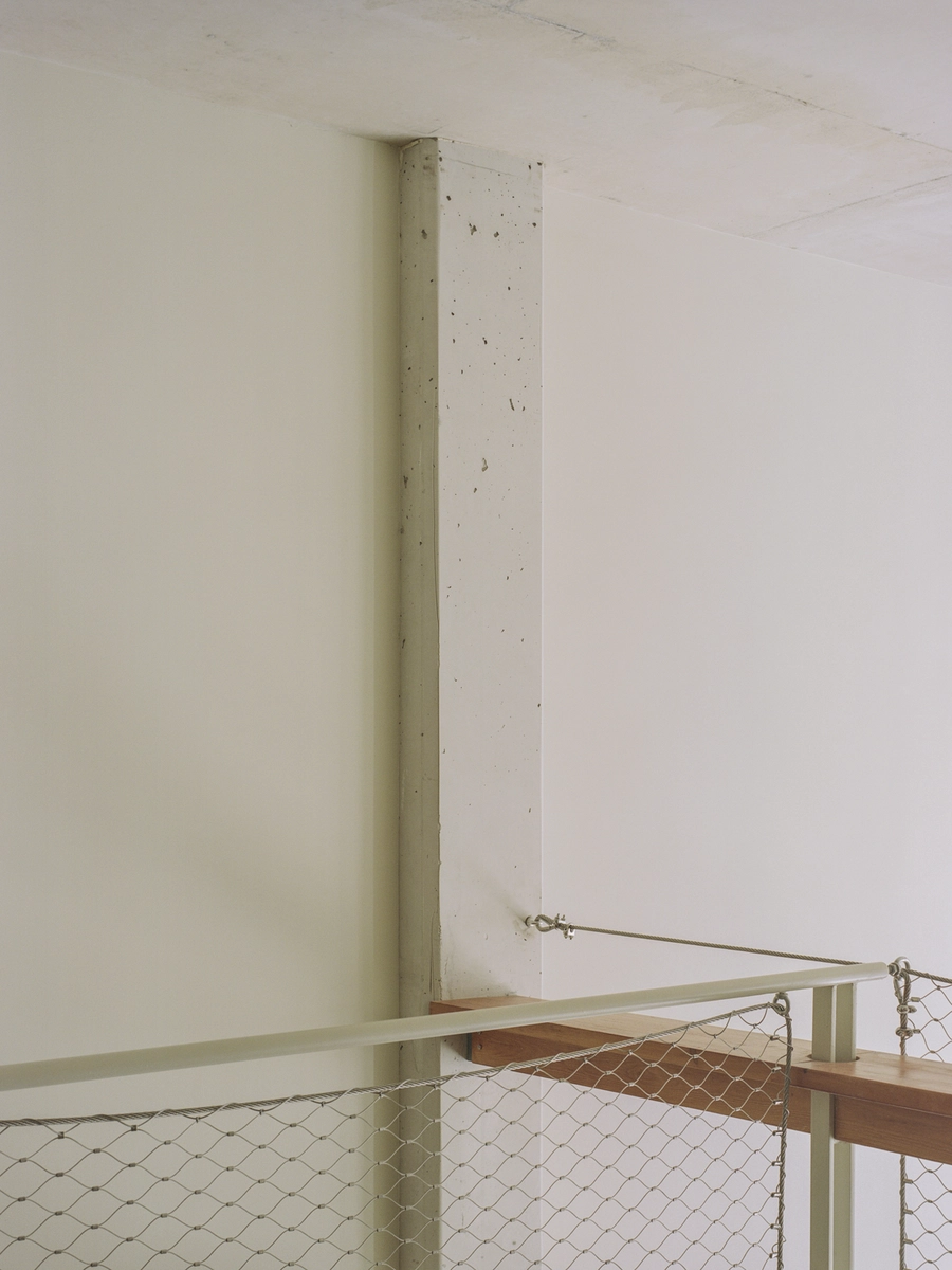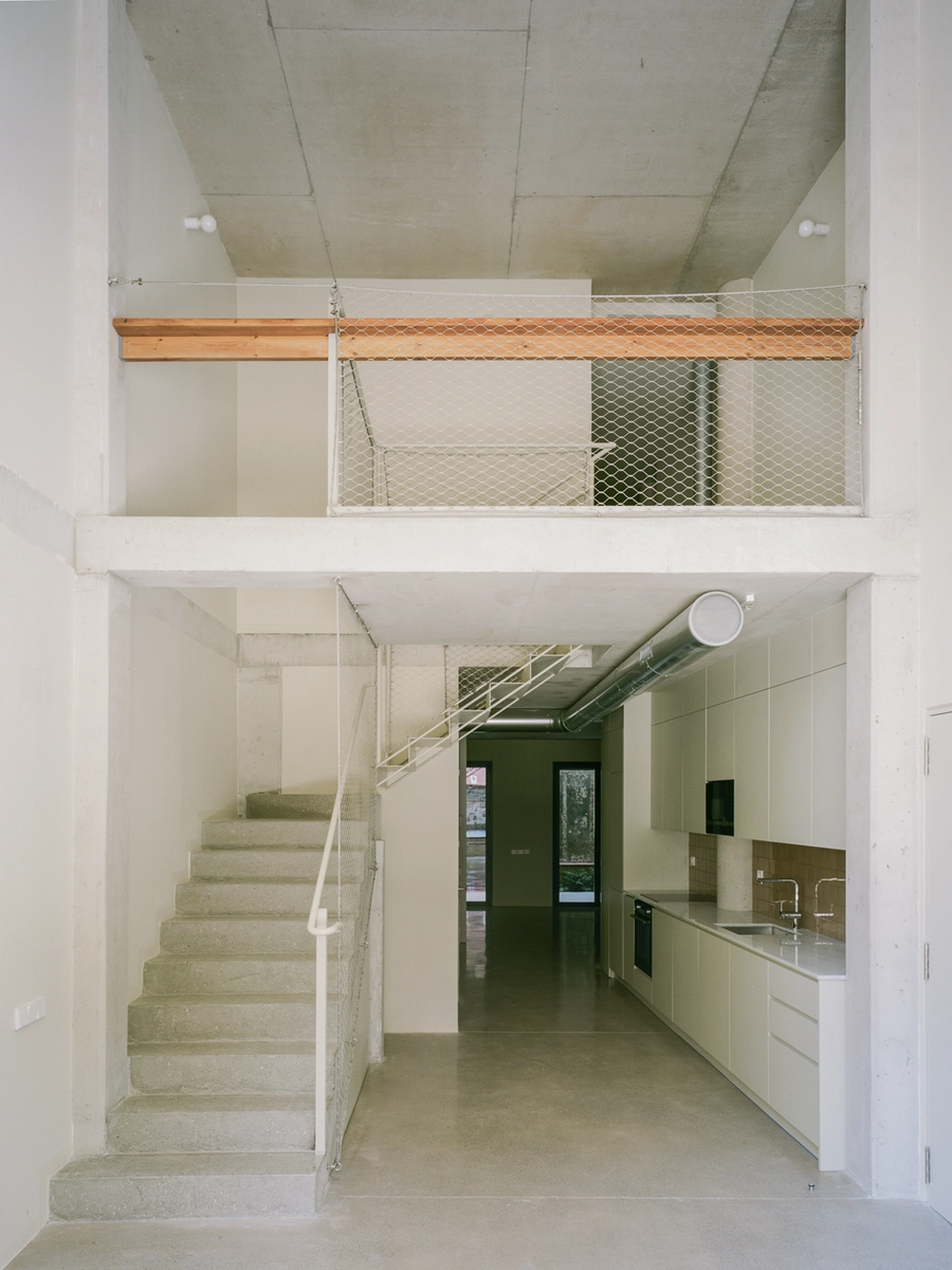 Al utilizar persianas de madera comerciales se asegura que pueden ser fácilmente y económicamente reparadas o reemplazadas. Las ventanas van del suelo al techo para lograr la sensación de máxima apertura en verano y jardín de invierno, con suelos de hormigón pulido y techos de losa de hormigón expuesto. La planta baja cuenta con dos dúplex pasantes con un jardín trasero, protegidos de la calle por celosías deslizantes de pino. El cuerpo superior se puede abrir completamente para lograr privacidad y un efecto de luz cenital que añade un gran valor a las viviendas.