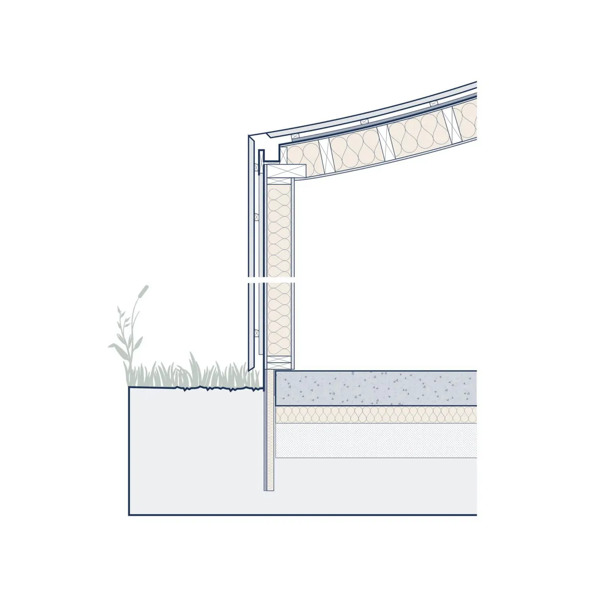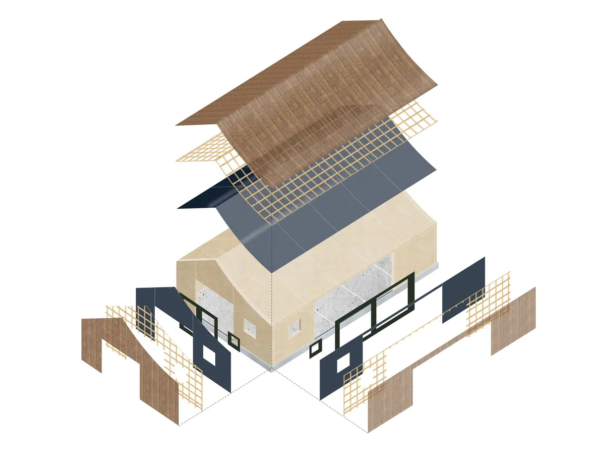 El nuevo edificio conserva la estética primitiva y esa simplicidad ancestral de los tejados a dos aguas. Se trata de un volumen básico, sencillo y efectivo. Sin embargo, se incorporó un toque de fantasía al curvar la mitad del techo. Aparte del efecto estético inmediato, que hace que nos fijemos en él, recuerda a esos viejos tejados combados por el paso del tiempo.