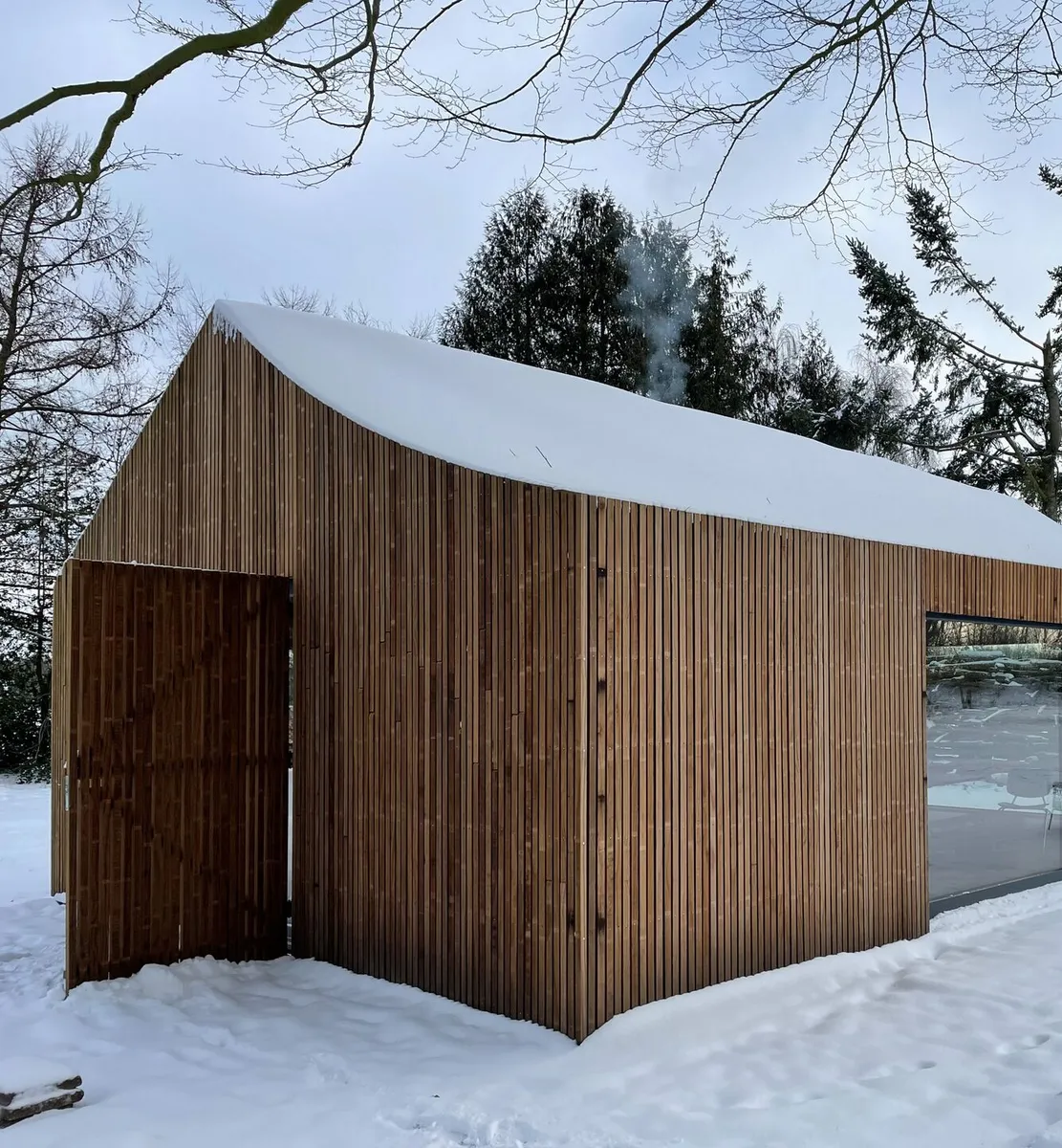 A pesar de todas estas dificultades, el resultado se integra de maravilla en el paisaje arbolado. Un cobertizo práctico y elegante que llama la atención sea cual sea la época del año.