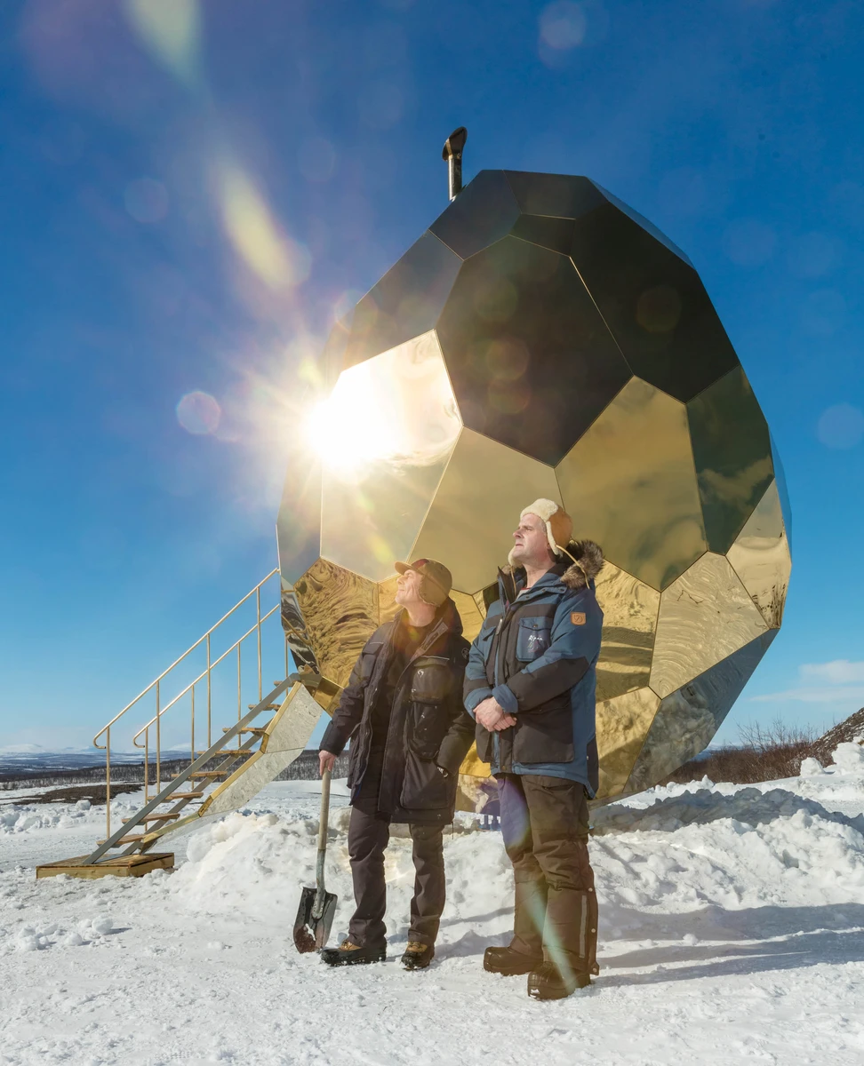 El flamante Solar Egg es una sauna pública instalada en Kiruna, la ciudad más septentrional de Suecia. Esta localidad, muy dependiente de sus minas de hierro desde finales del siglo XIX, se encuentra en un traumático proceso de mudanza. La veta de mineral corta la ciudad vieja en diagonal, por lo que esta se ha visto forzada a trasladarse para conservar su principal fuente de ingresos. Sin embargo, tanto la nueva extracción como la transformación radical del paisaje que implica el traslado están haciendo mella en la población.