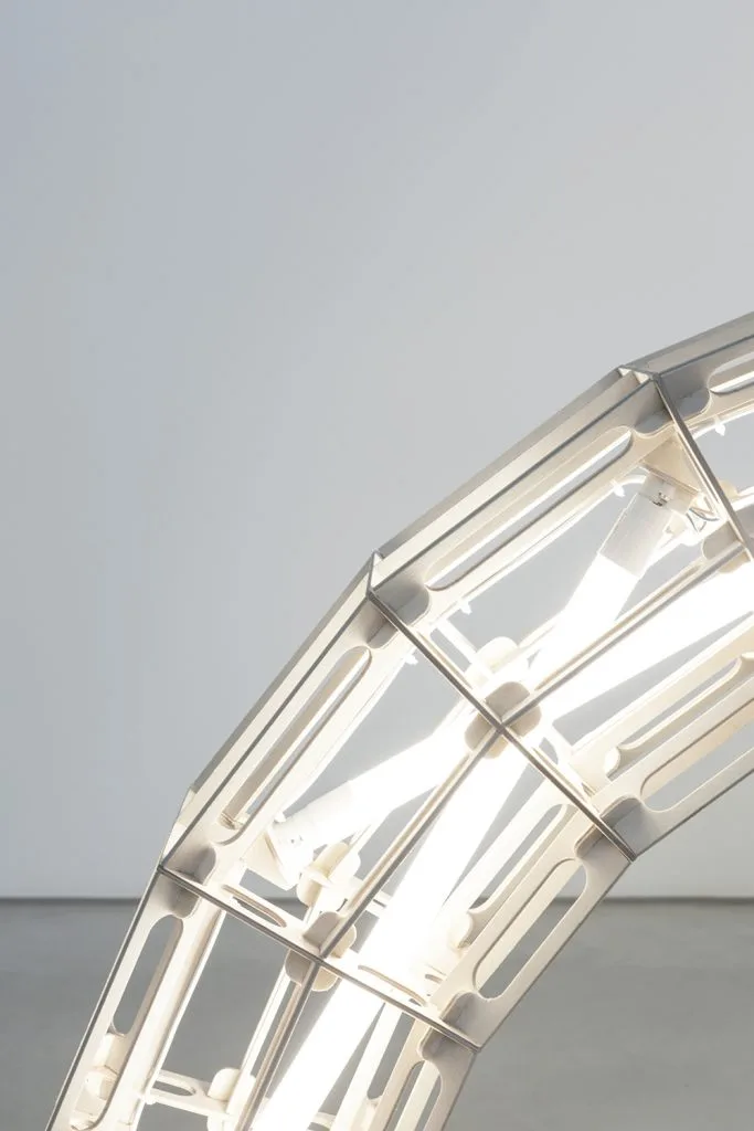 Así pues, si bien algunas de las esculturas de luz parecen flotar, otras permanecen firmemente ancladas a la tierra. Una muestra clara de esa dualidad o ligereza contundente marca del Studio Mieke Meijer.
